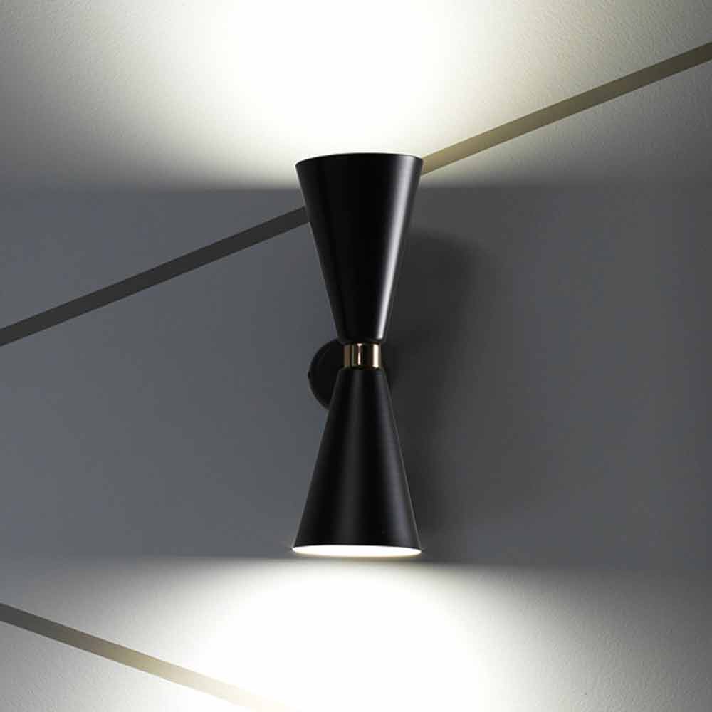 Nástěnná lampa z matného černého kovu s detaily ve zlaté povrchové úpravě Made in Italy.