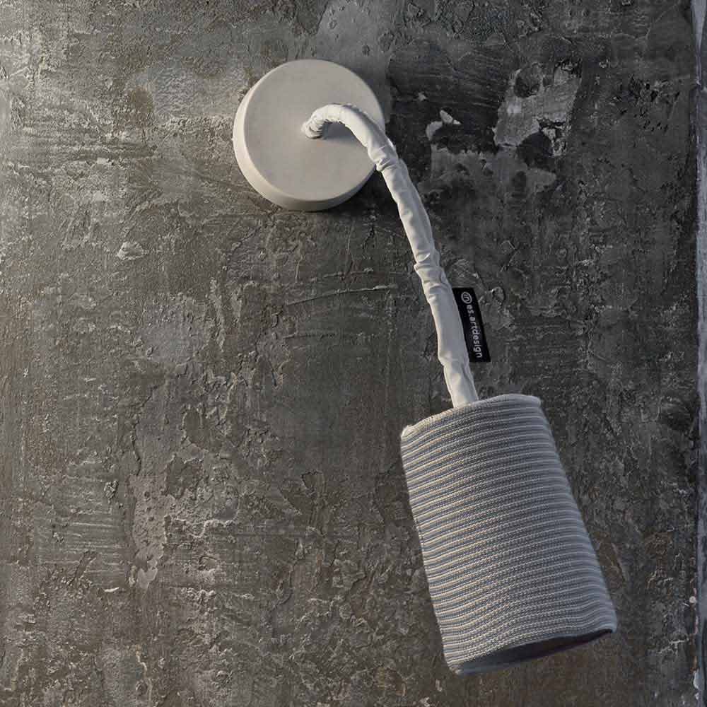 Moderní a moderní nástěnná svítidla charakterizovaná nebulitní strukturou (inovativní materiál vyrobený z pryskyřice a vlákna) pokrytý pruhovanou vlněnou přízí.
