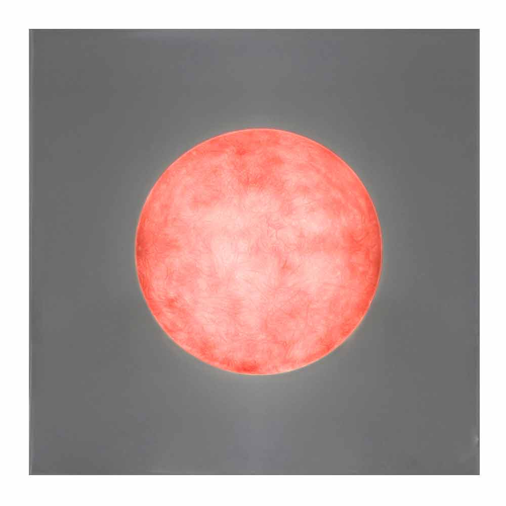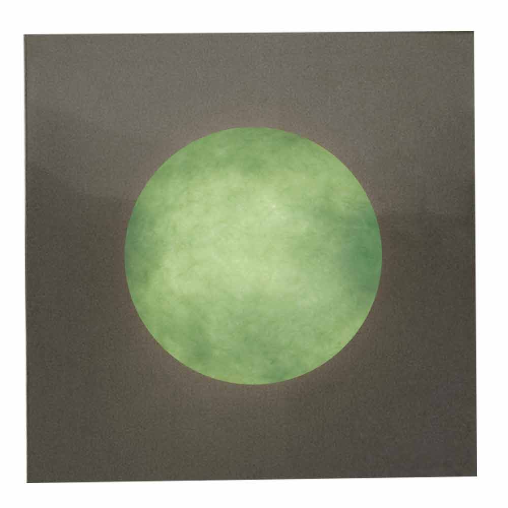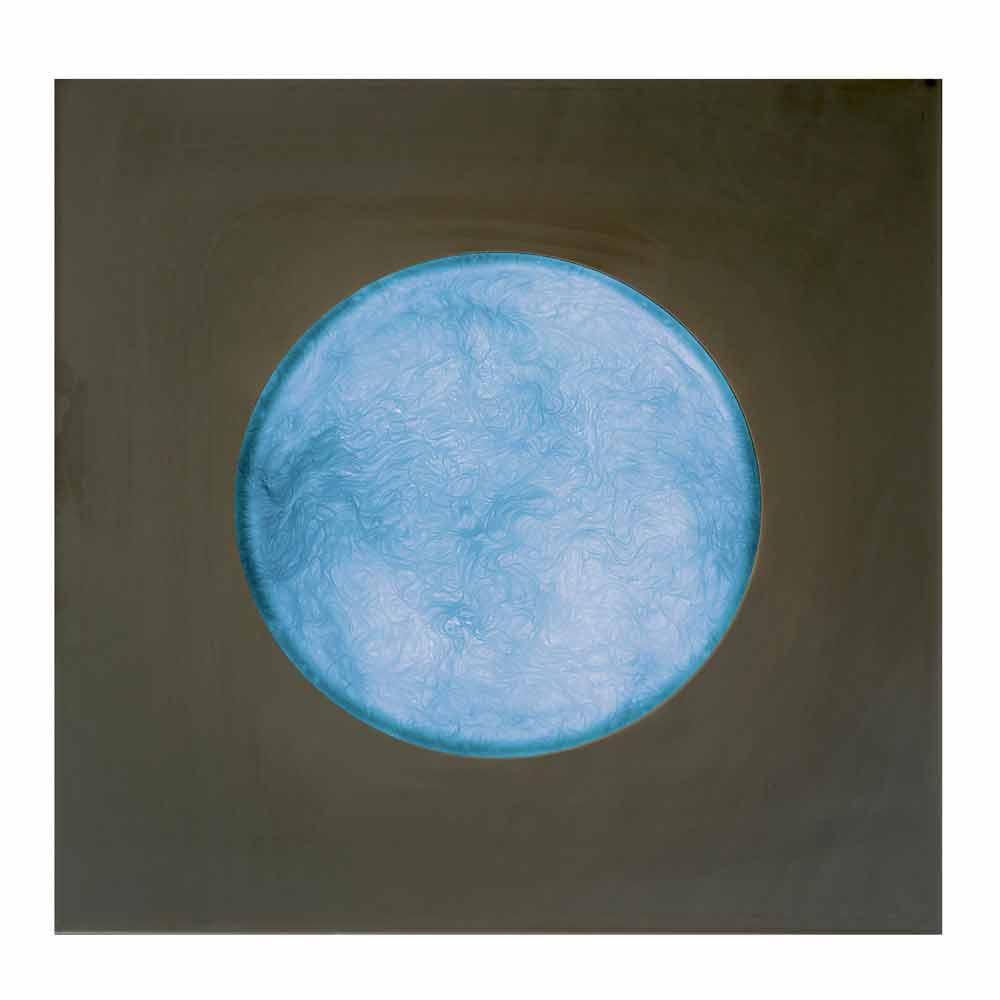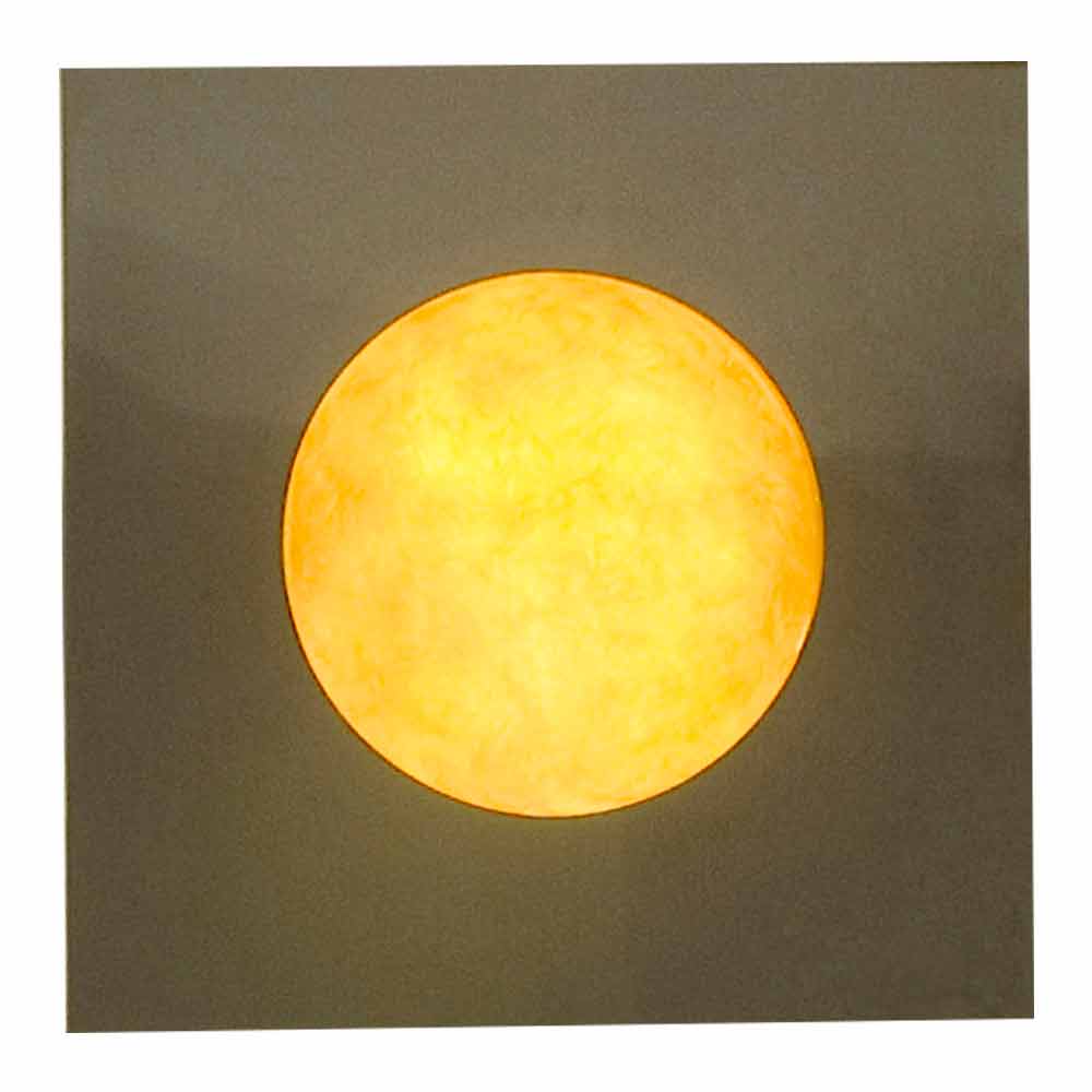 Skvělé umělecké dílo vyrobené z leštěné oceli a Nebulitu, materiál složený z pryskyřice a vlákniny, jejichž žíly dávají žárovce zvláštní měsíční účinek.