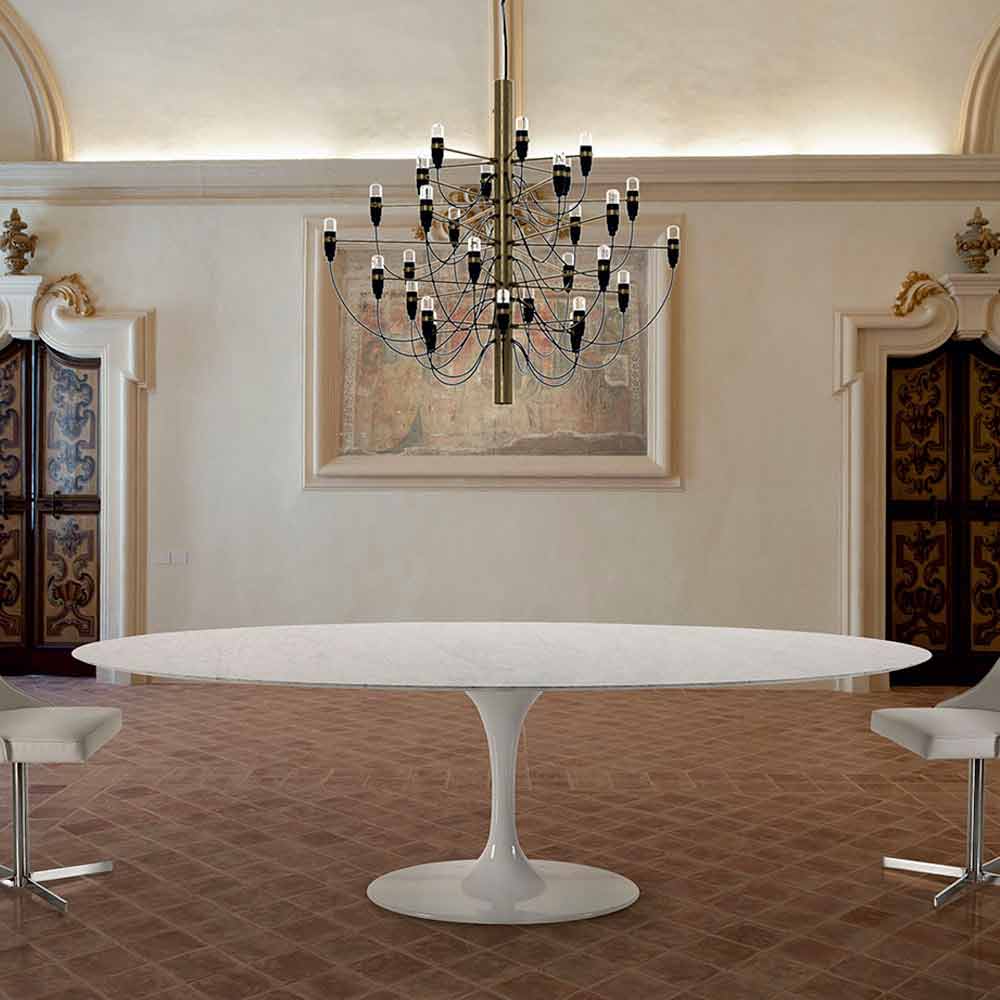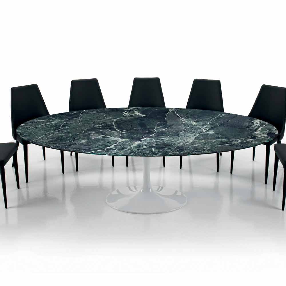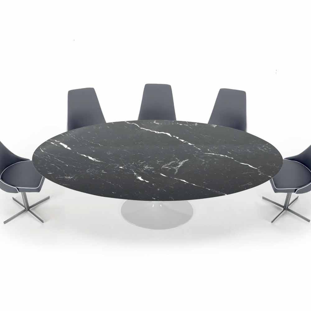 Oválný stůl do obývacího pokoje s deskou z mramoru Carrara nebo Nero Marquinia, ručně vyrobený v Itálii.