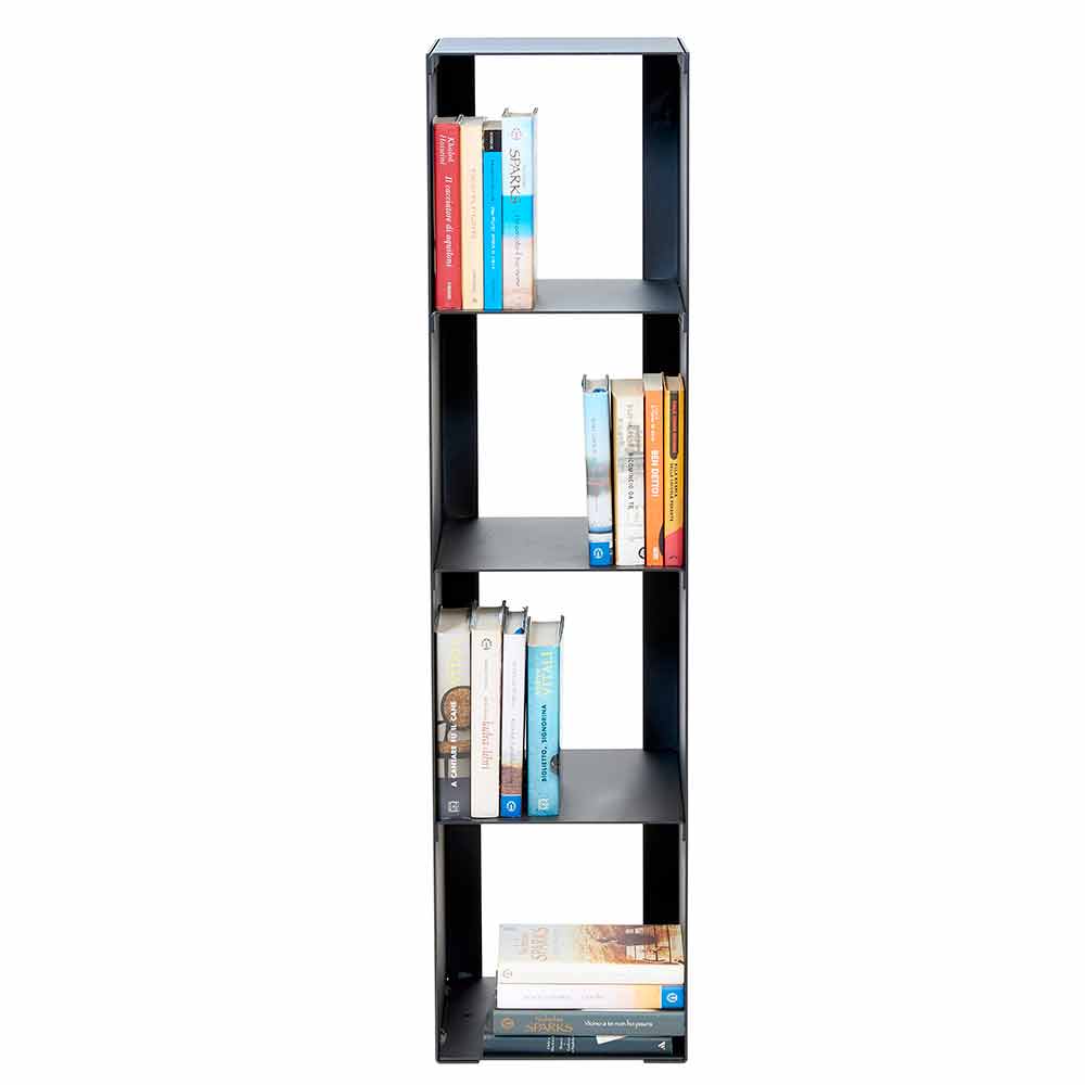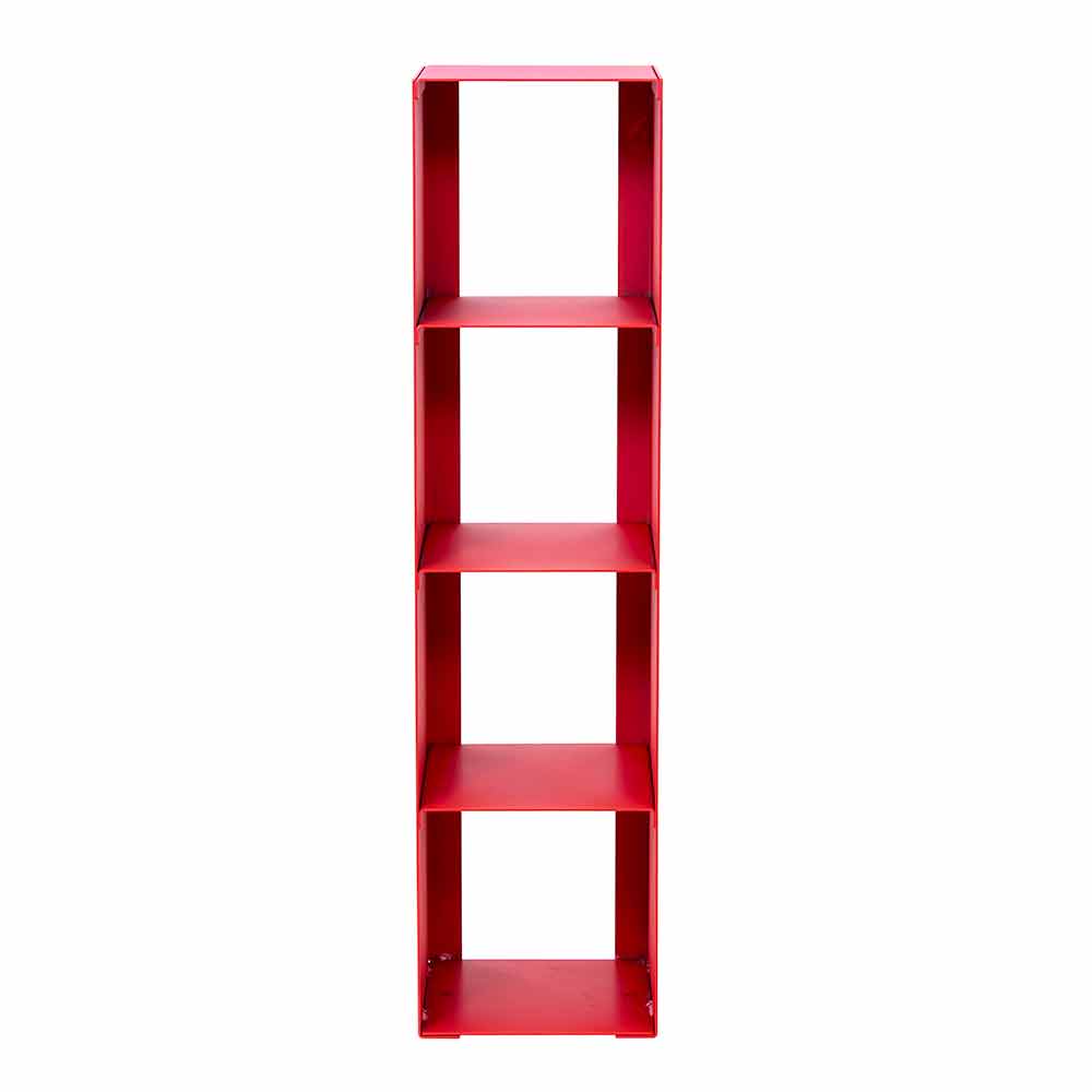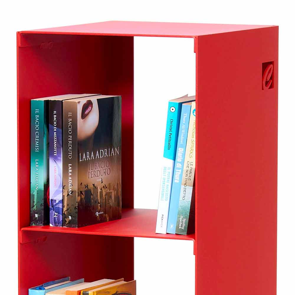 Podlahová knihovna v moderním stylu s černými, červenými, bílými nebo šedými malovanými železnými policemi; vyrobeno v Itálii.