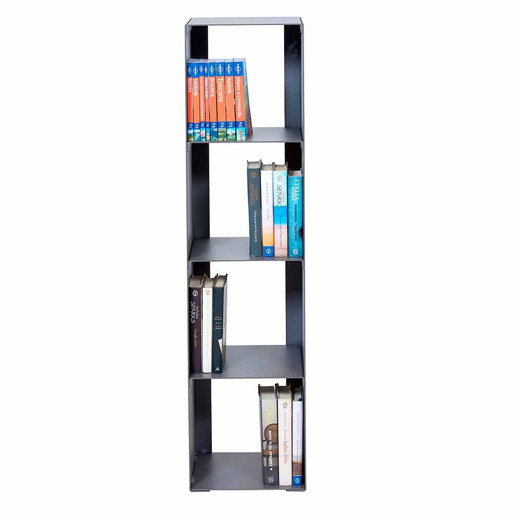 Má jednoduchý a originální design. Svařované police umožňují podporu knih i jiných předmětů, suvenýrů nebo fotorámečků.