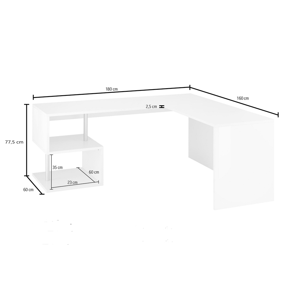 Bílý nebo břidlicový dřevěný rohový psací stůl, moderní design vyrobený v Itálii.