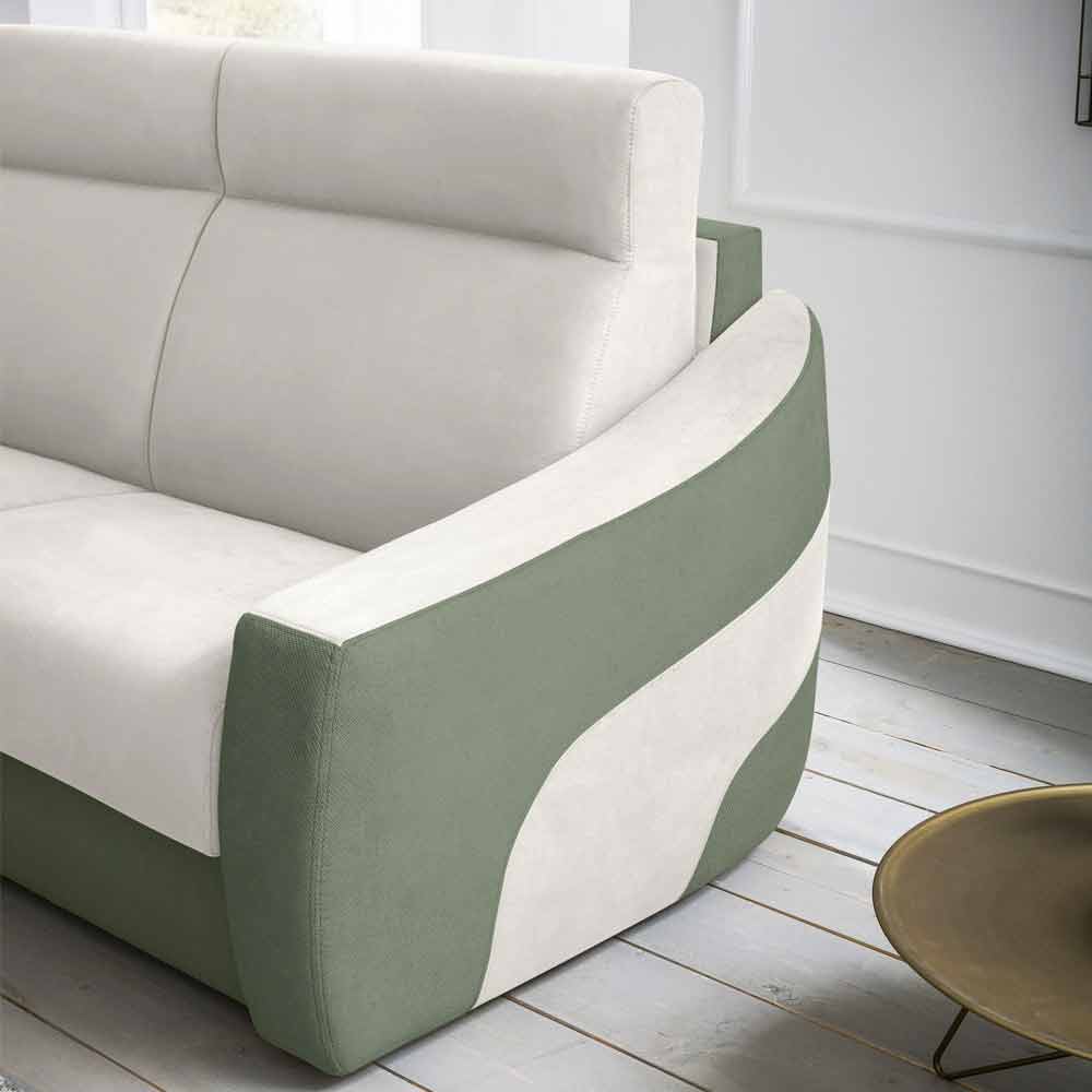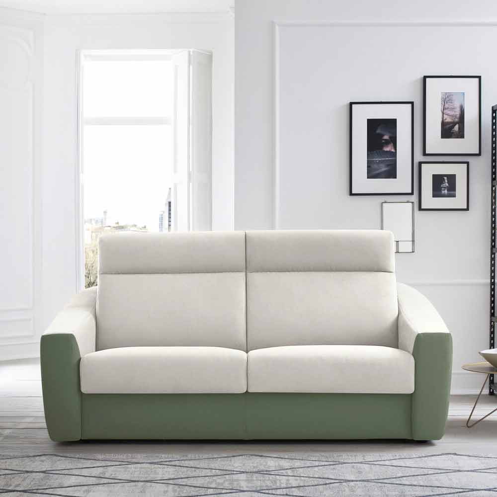 Moderní rozkládací pohovka pro dva z dvoubarevné látky vyrobené v Itálii.