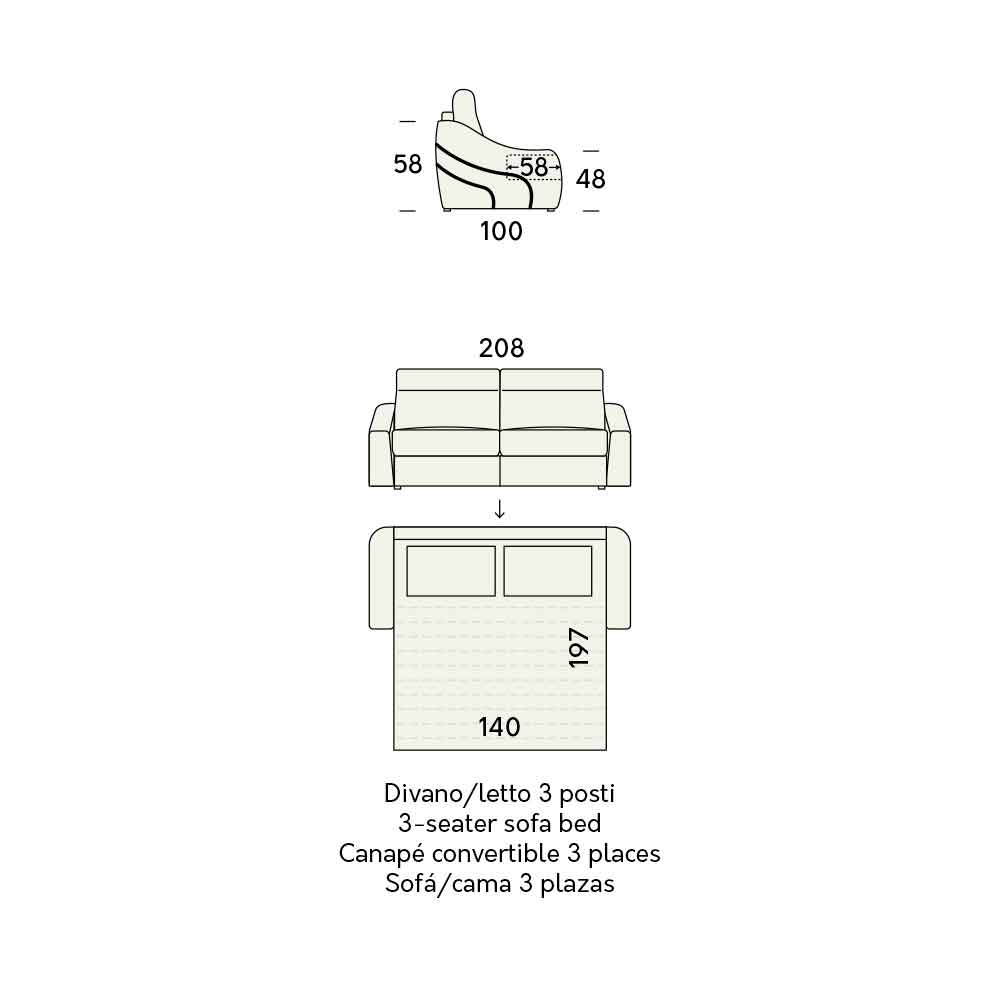 - L 208 x P 100 x H 104 cm (matrace: L 140 x P 197 x H 14 cm);
