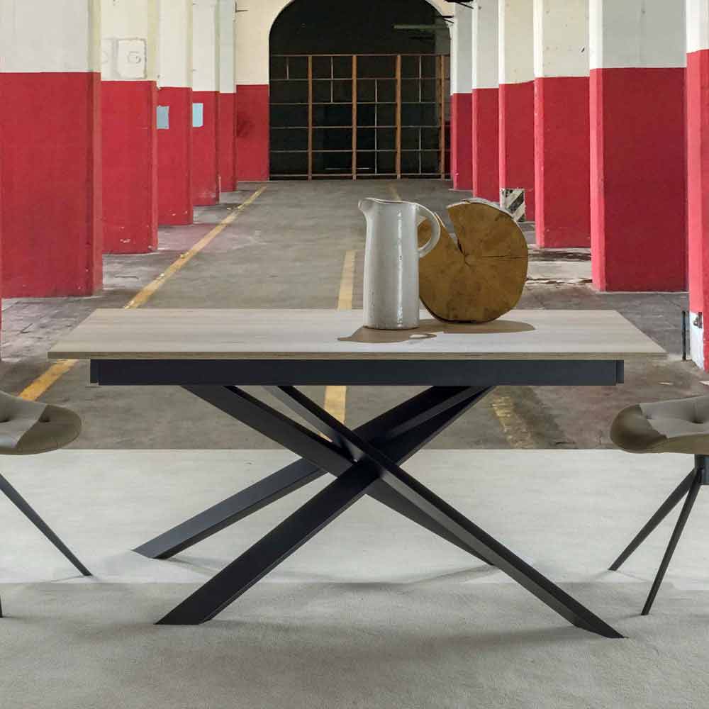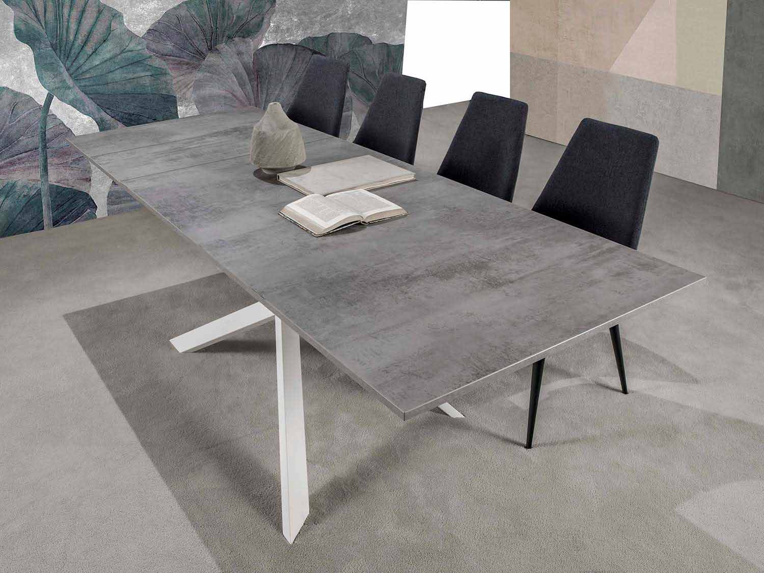otevření až 270 cm. Nohy tohoto produktu odrážejí jeho identitu, přičemž se mezi nimi prolínají. Použitým materiálem je