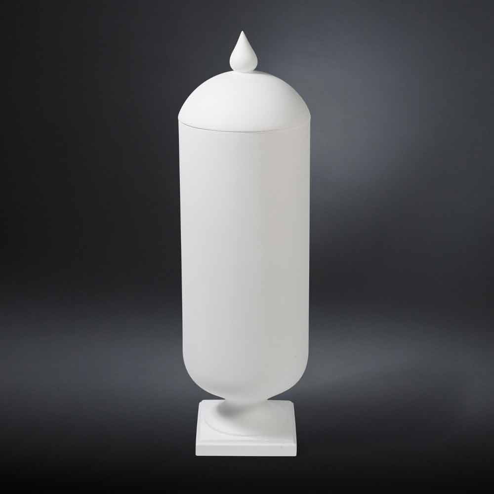 Dekorativní váza z neprůhledné bílé keramiky ručně vyráběná v Itálii.