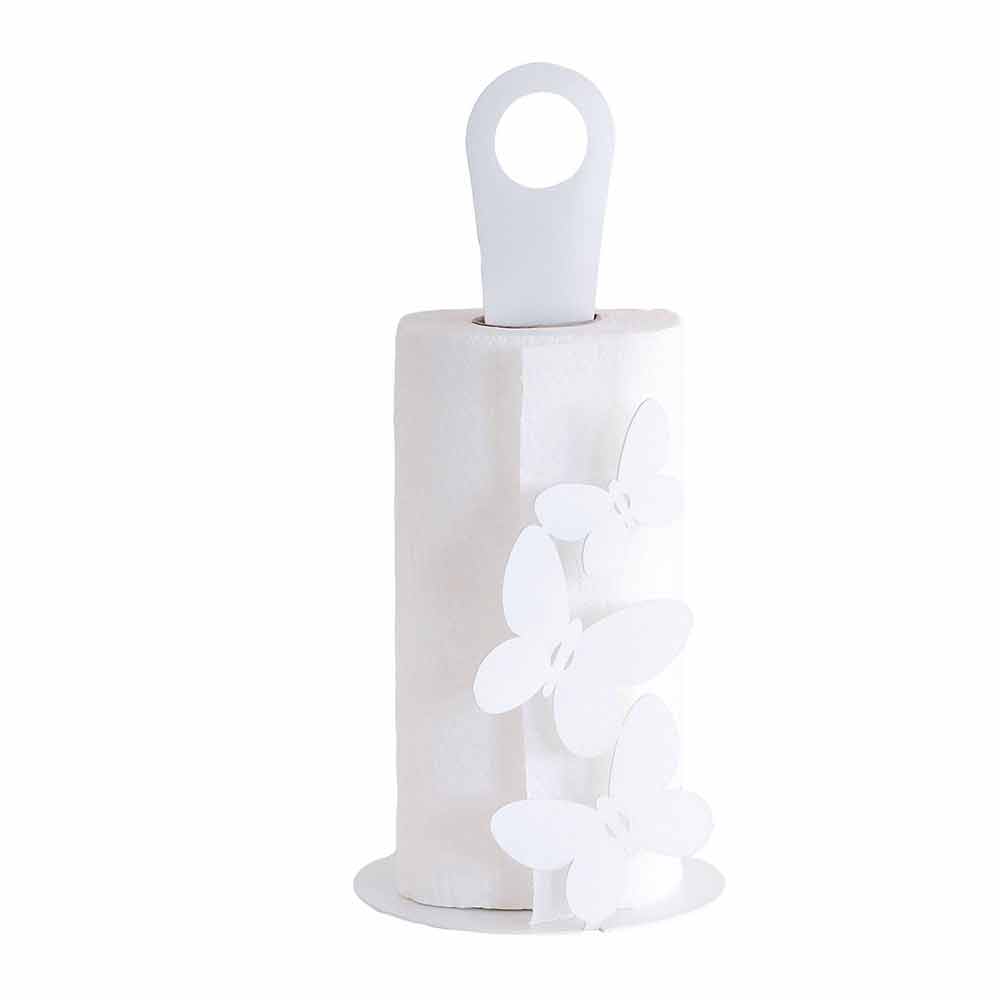 Moderní držák kuchyňské role v bílé, béžové nebo slonovinové železě ručně vyráběné v Itálii.