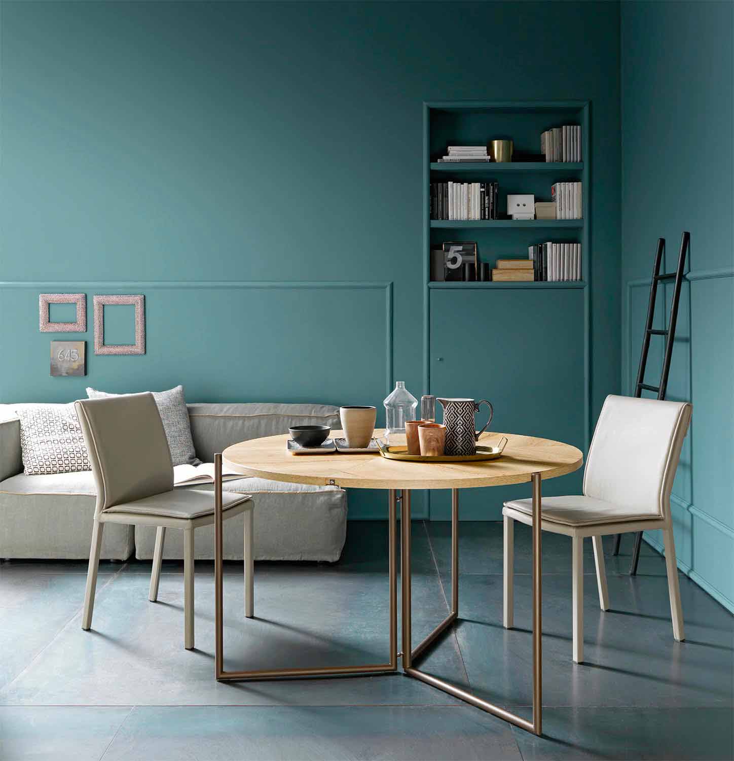 Designový rozkládací jídelní stůl s deskou z melaminového dřeva a kovovou podnoží Made in Italy.
