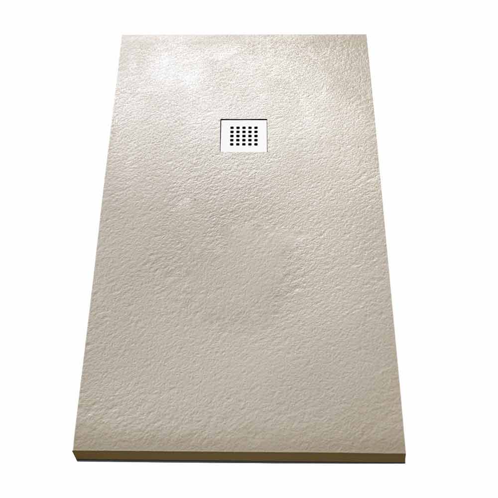 Moderní sprchová vanička 160x70 v kamenném efektu s ocelovou mřížkou.