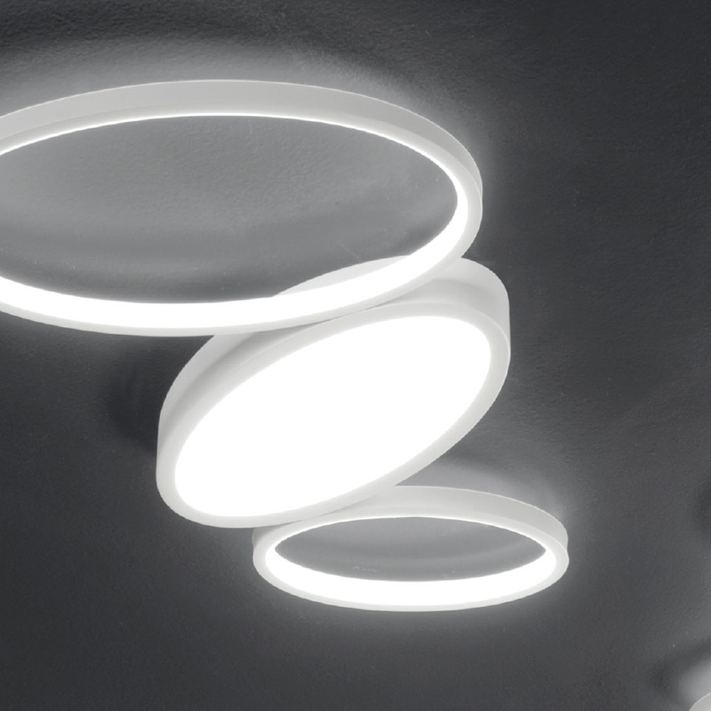 Stmívatelné stropní LED svítidlo z kovu s akrylovým a silikonovým difuzorem.