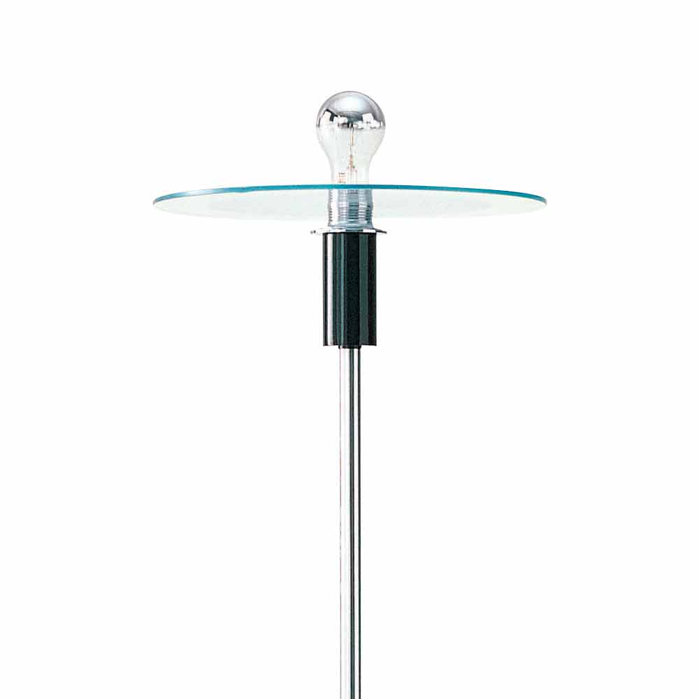 Moderní stojací lampa s chromovanou strukturou a skleněnou deskou Made in Italy.