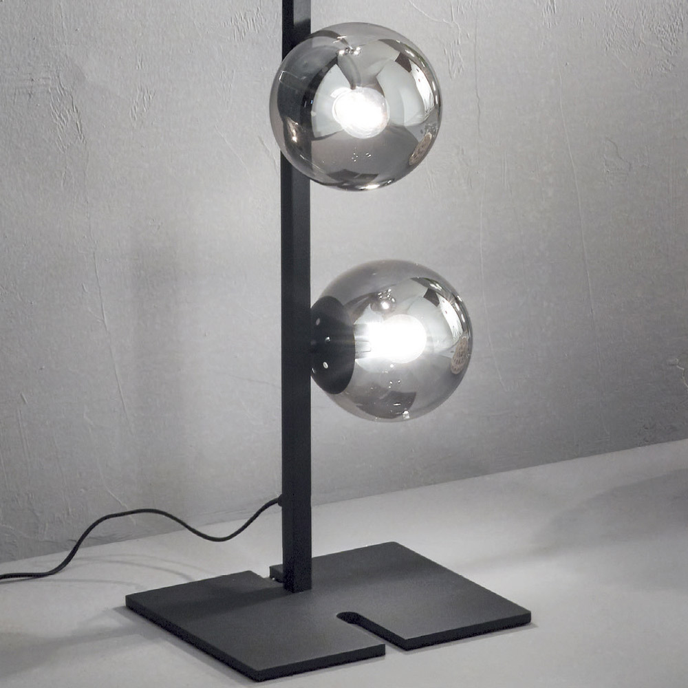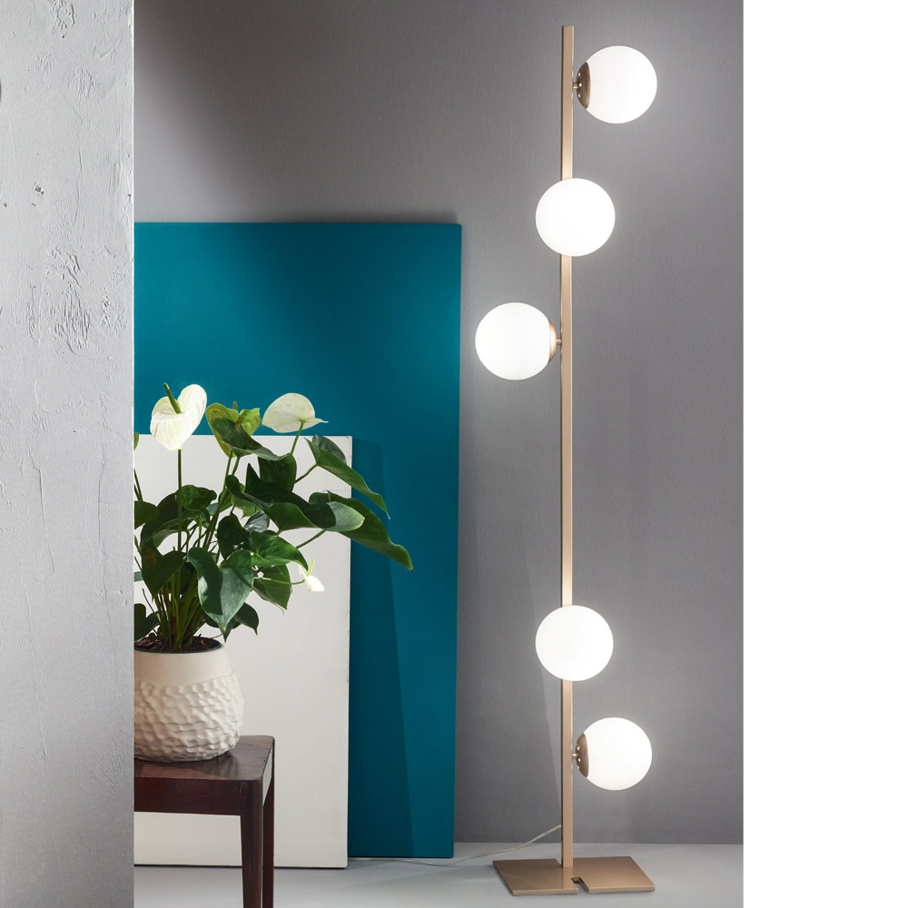 Moderní stojací lampa s kovovou konstrukcí a kulovými