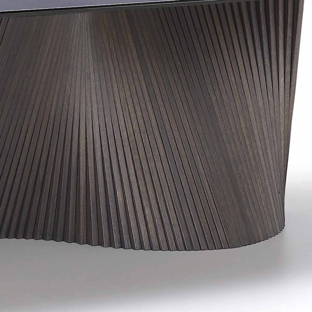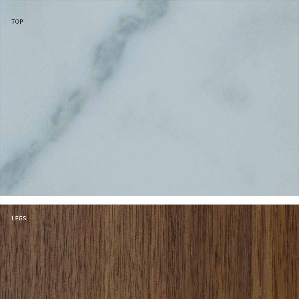 - základna sestávající z více než 70 lamel v ručně naolejovaném popelenovém dřevě v barvě ořechu a vrcholu ve formě polotáru v kamenině v neprůhledném statuariálním bílém mramoru.