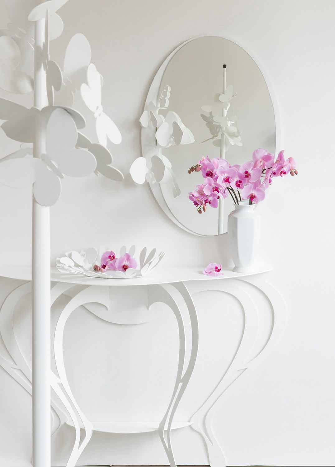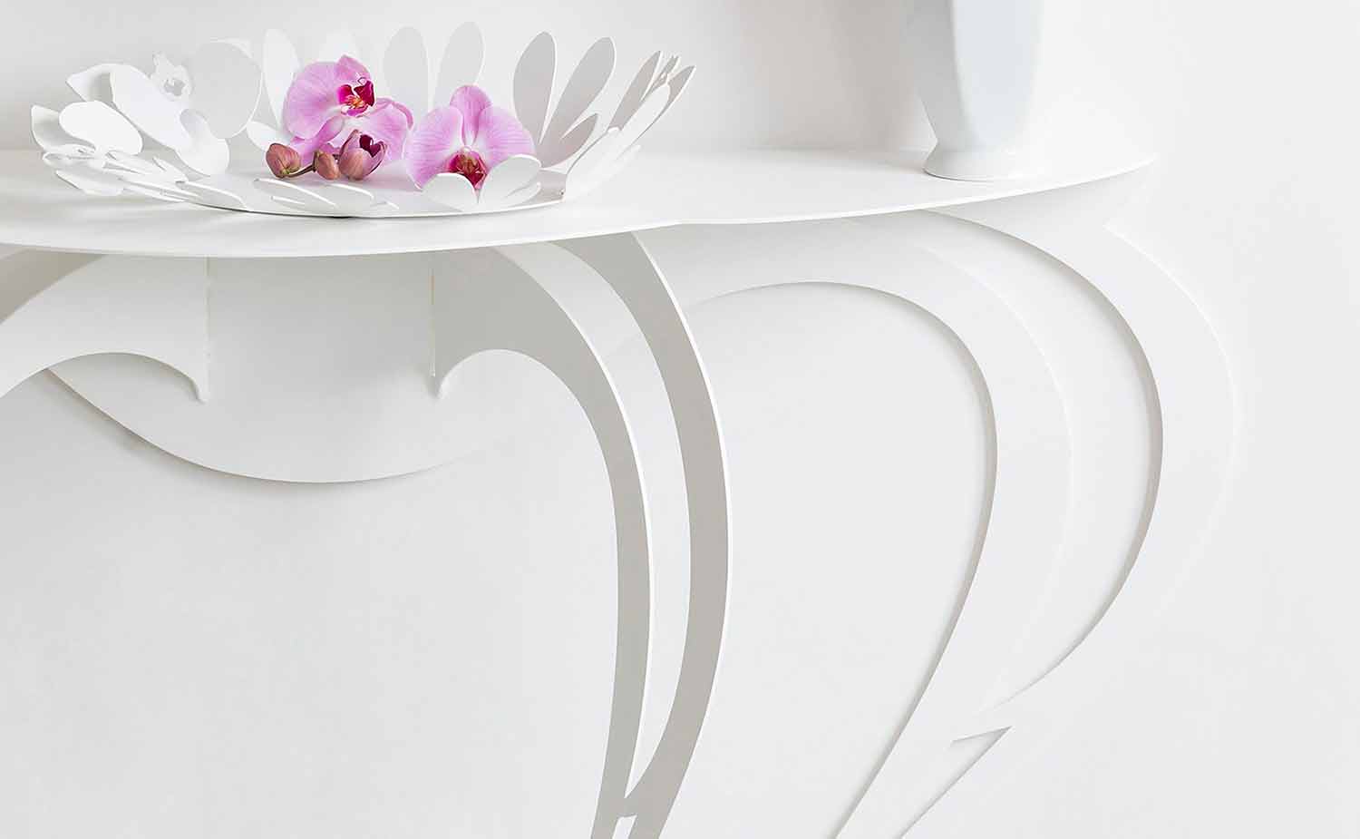 Barbata je nepřijatelná konzole obývacího pokoje se zakřivenými a harmonickými liniemi, díky nimž je obzvláště výjimečná. Vybaveno štěrbinami na zadní straně, které se připevňují ke zdi, a ručně vyráběné v Itálii železem.