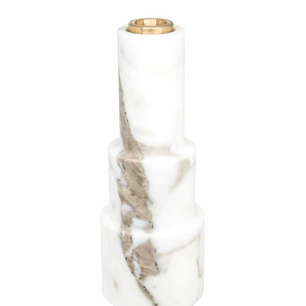 Vysoký moderní svícen z bílého mramoru Carrara a mosazi Made in Italy.