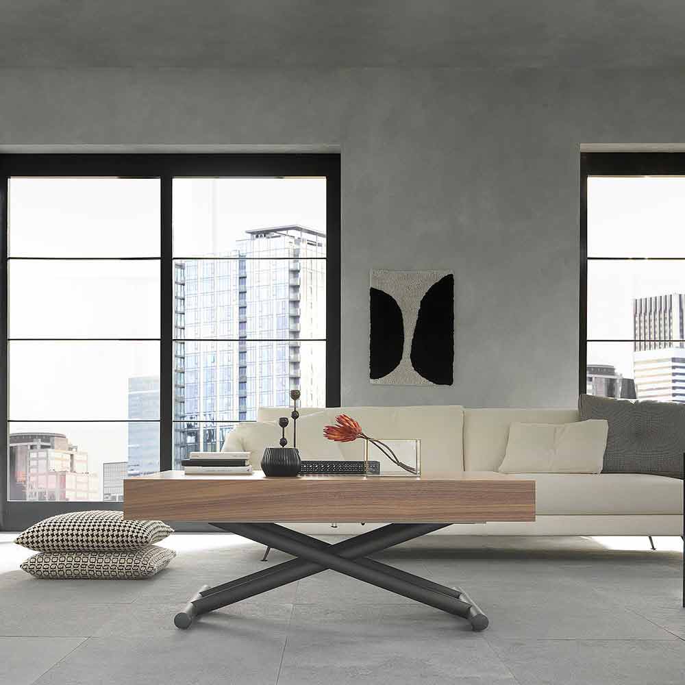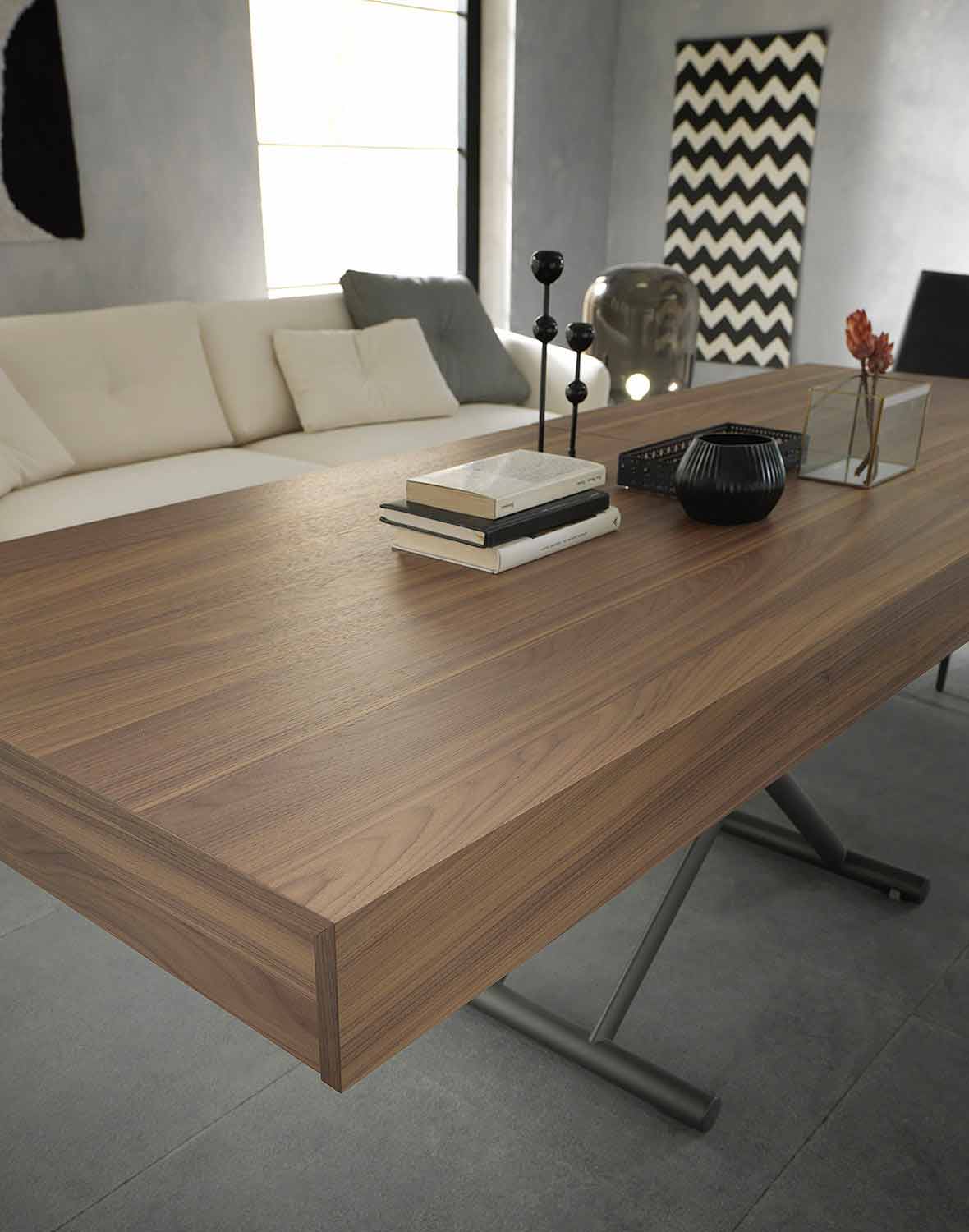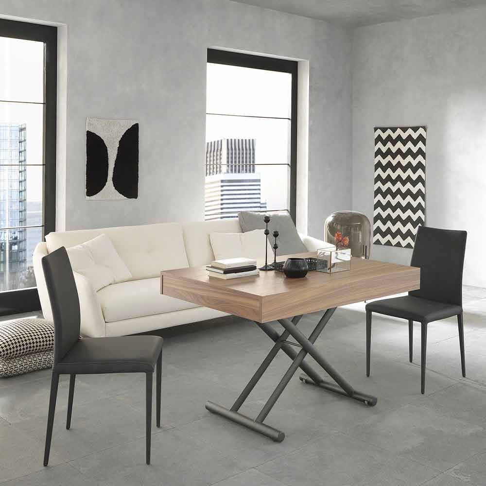 transformovatelný konferenční stolek se vyznačuje elegantními a zásadními liniemi, které doprovázejí všestranný design vhodný pro vybavení jakéhokoli stylu prostředí.