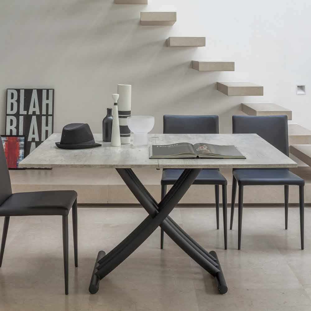 Transformovatelný konferenční stolek z kovu a dřevěné desky vyrobený v Itálii.