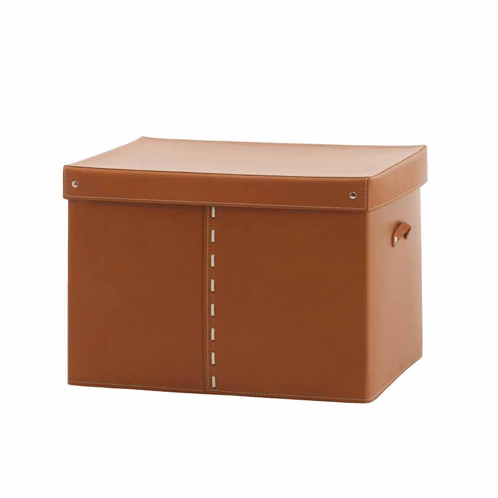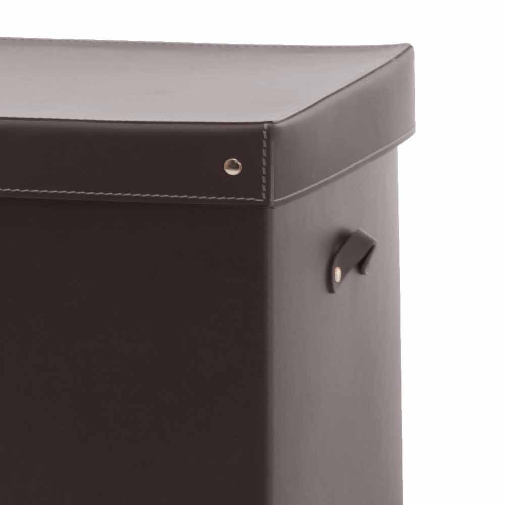 Moderní designový úložný kontejner ručně vyrobený v Itálii v barevné regenerované kůži.