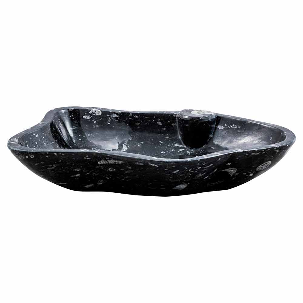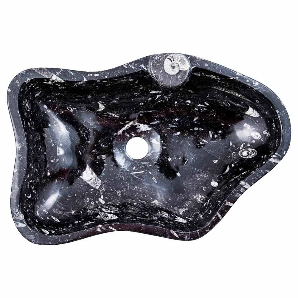 Designové ručně vyrobené umyvadlo na desku vyrobené z mramoru s fosiliemi.