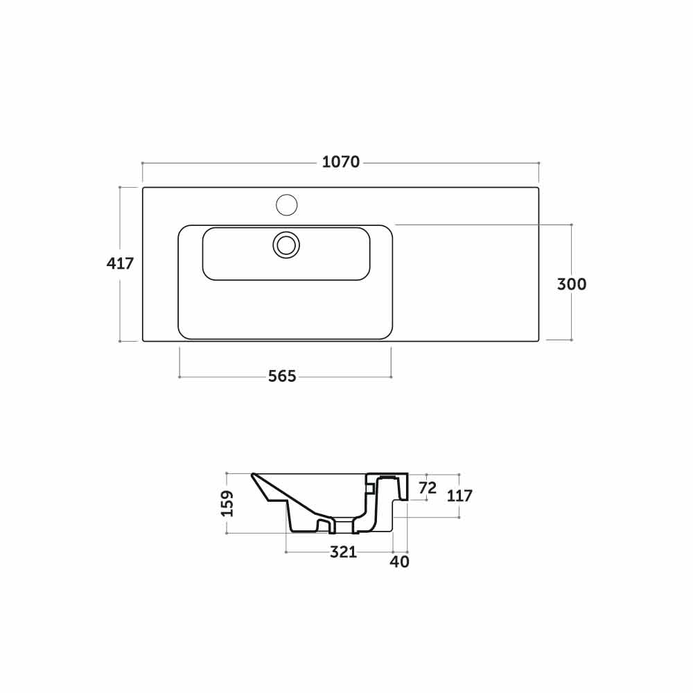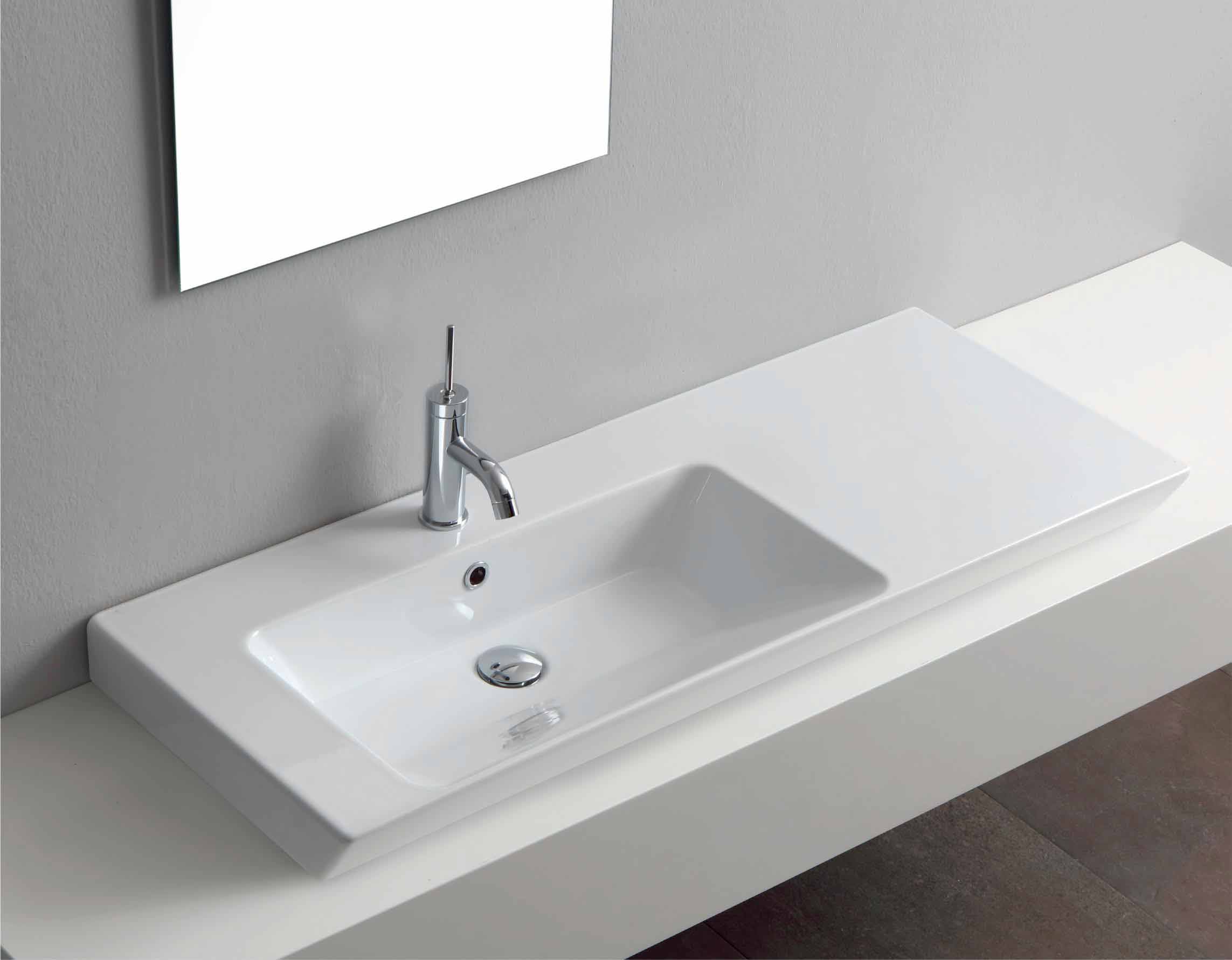 Umyvadlo na pracovní desku a na stěnu se vyznačuje moderním a jednoduchým designem , který se dokáže přizpůsobit jakémukoli prostoru a nábytku. Dekorativní aspekt je dokonale spojen s funkčností, která je základním prvkem koupelny. Použití sklovitého porcelánu , zvláštního druhu glazované keramiky vařené při 1200 ° , umožňuje použití tohoto dřezu bez obav z poškození povrchu. Je to materiál odolný vůči kyselinám, teplu, hrbolům a poškrábání a nezmizí přesčasy. Je také hygenní a snadno se čistí .