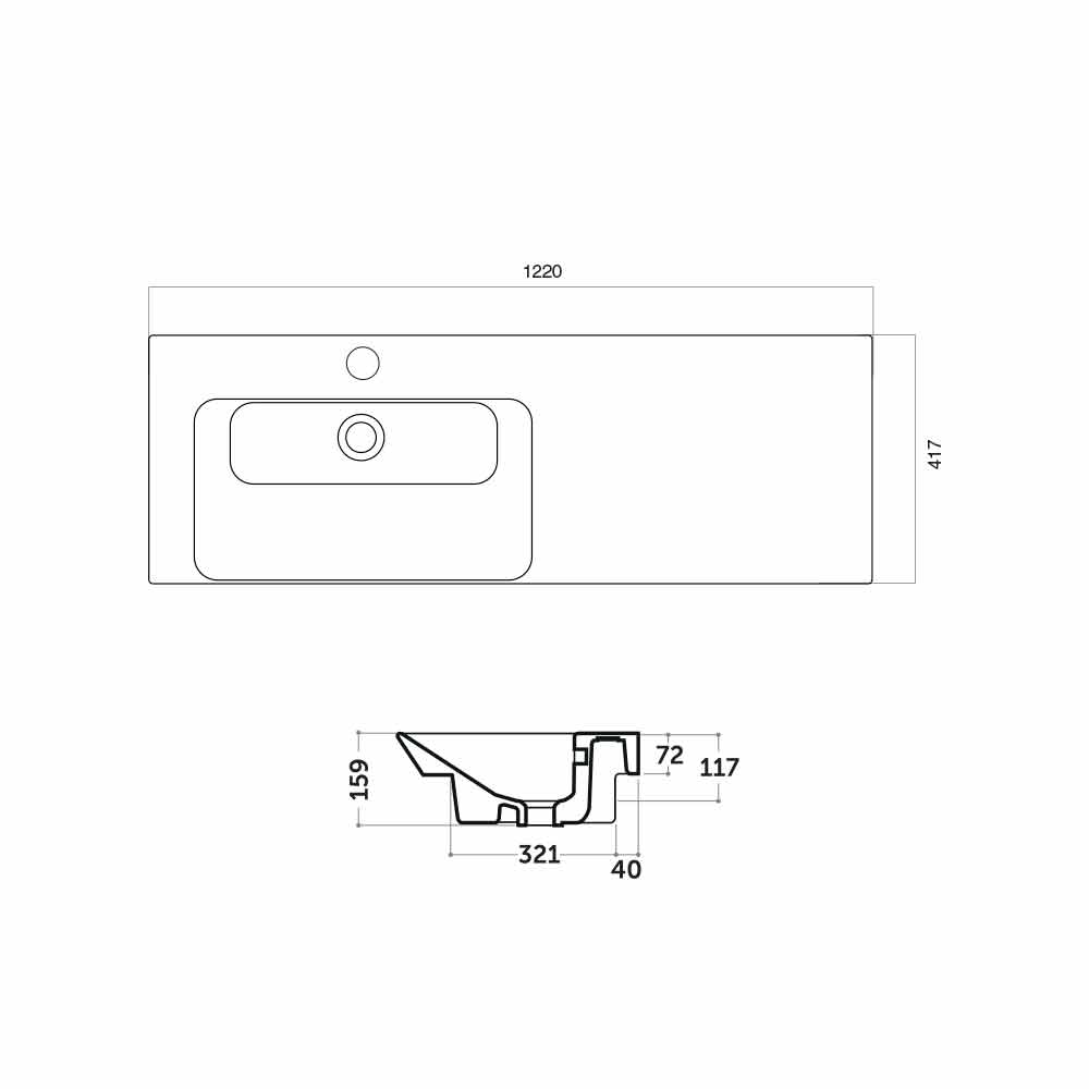 Umyvadlo na pracovní desku a na stěnu se vyznačuje
