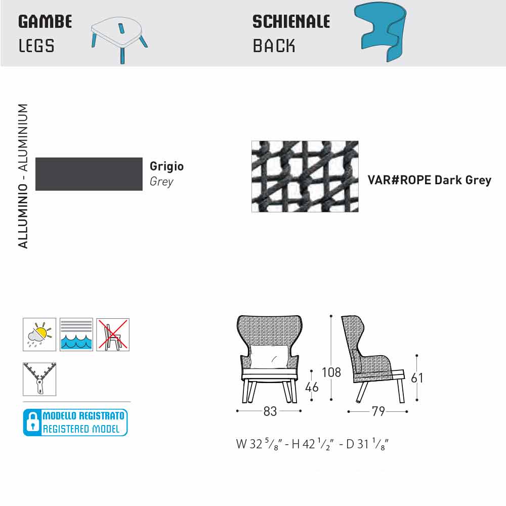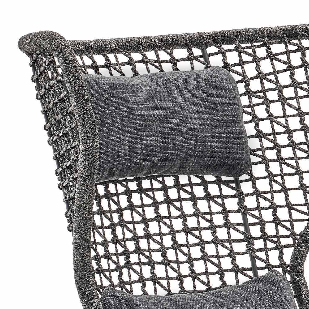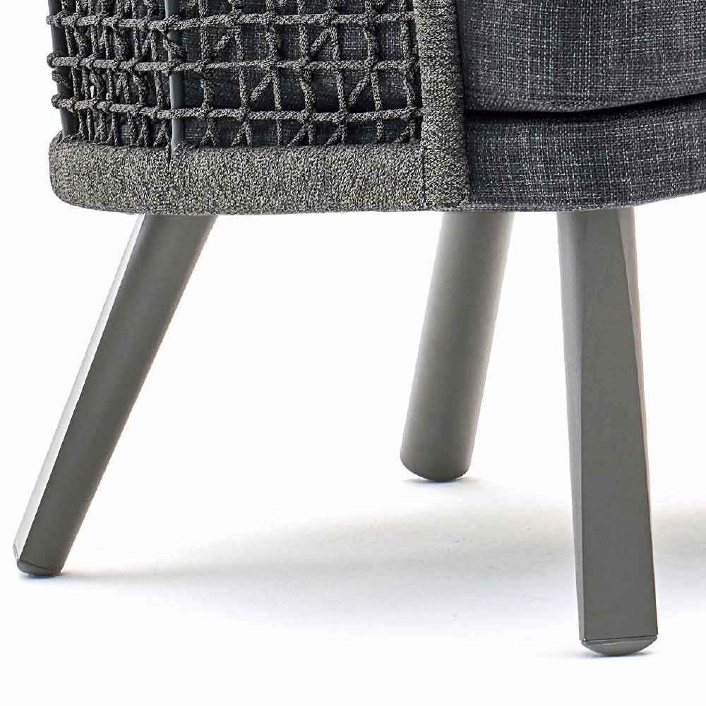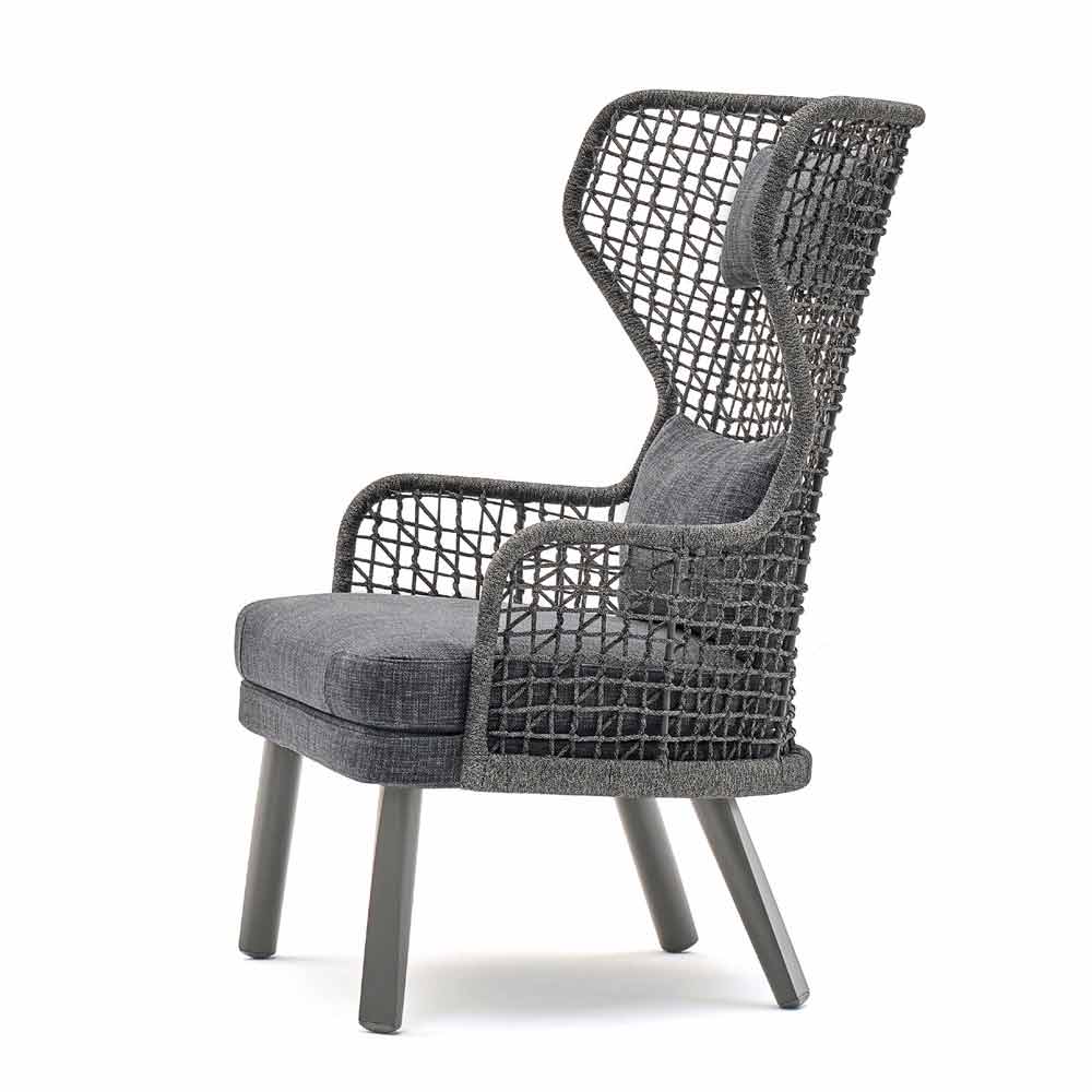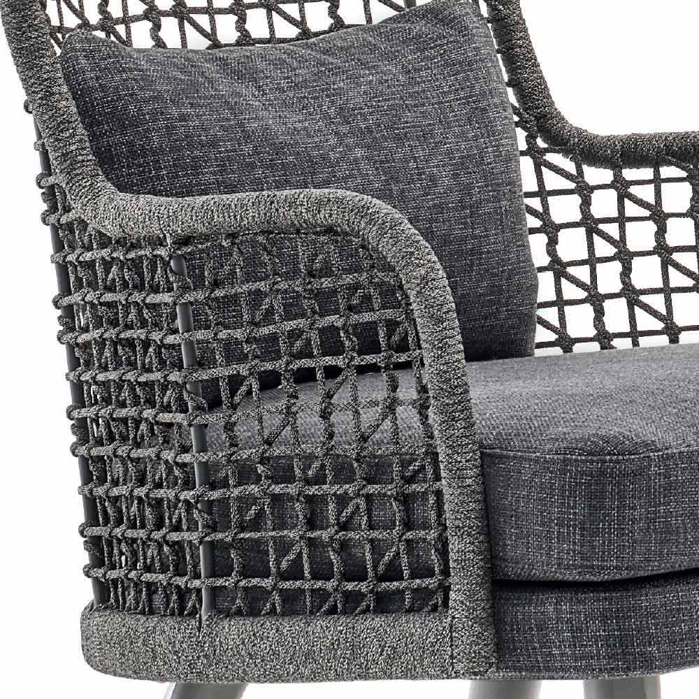 Emma je nádherné zahradní křeslo se strukturou z ručně tkaného syntetického vlákna s tmavě šedým práškovým hliníkovým rámem .