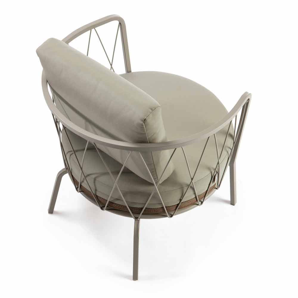 Designové venkovní křeslo z látky a práškově lakovaného pozinkovaného železa s polštářem. Vyrobeno v Itálii.