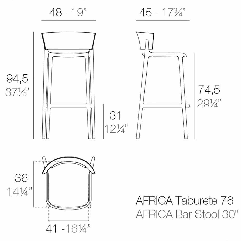 Venkovní stolička Africa určená pro venkovní i vnitřní prostory. Použitým materiálem je polypropylen vstřikovaný vzduchem a skleněnými vlákny.