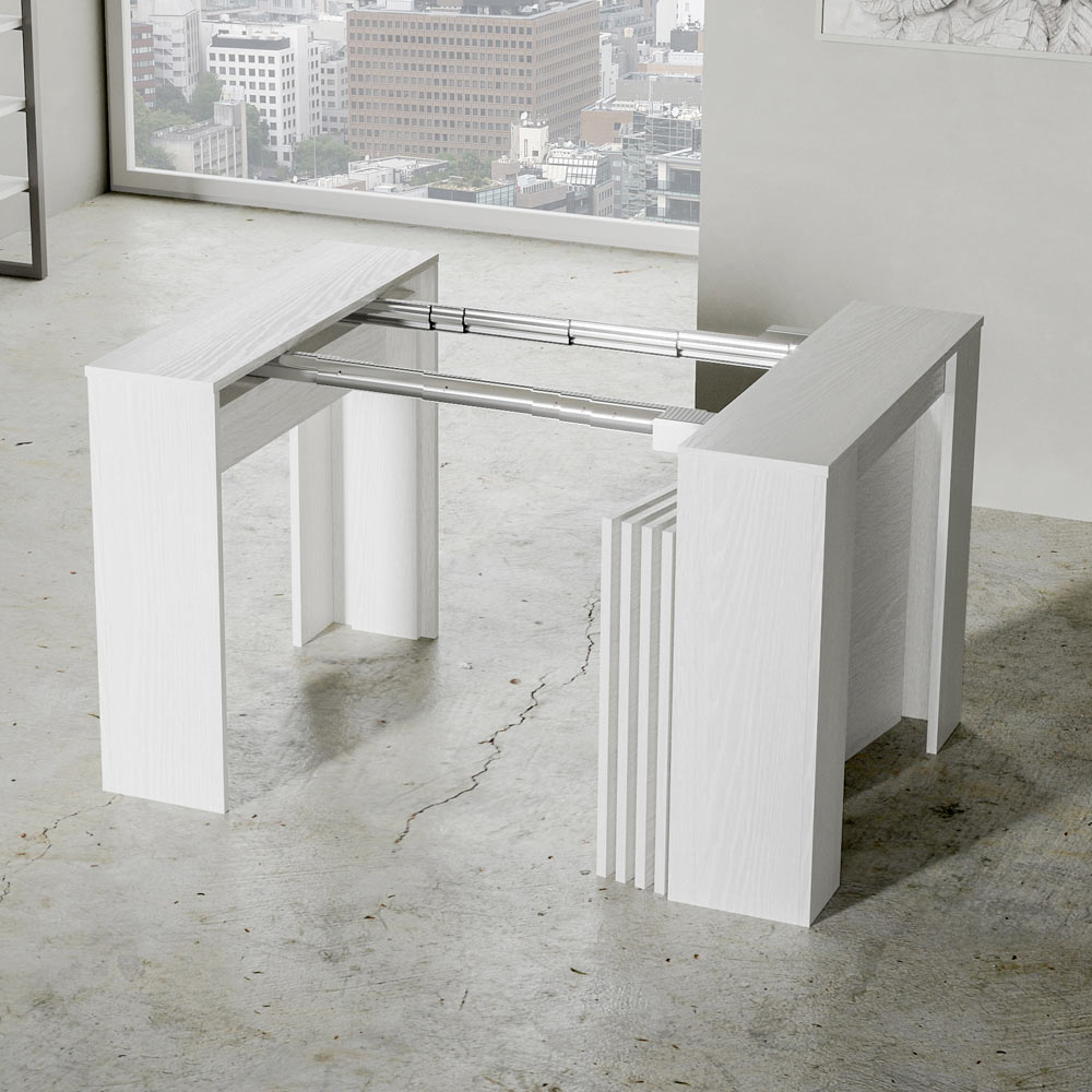 Nechte se okouzlit čistotou a funkčností tohoto rozkládacího konzolového stolku, kusu nábytku, který představuje kvintesenci všestrannosti moderní.