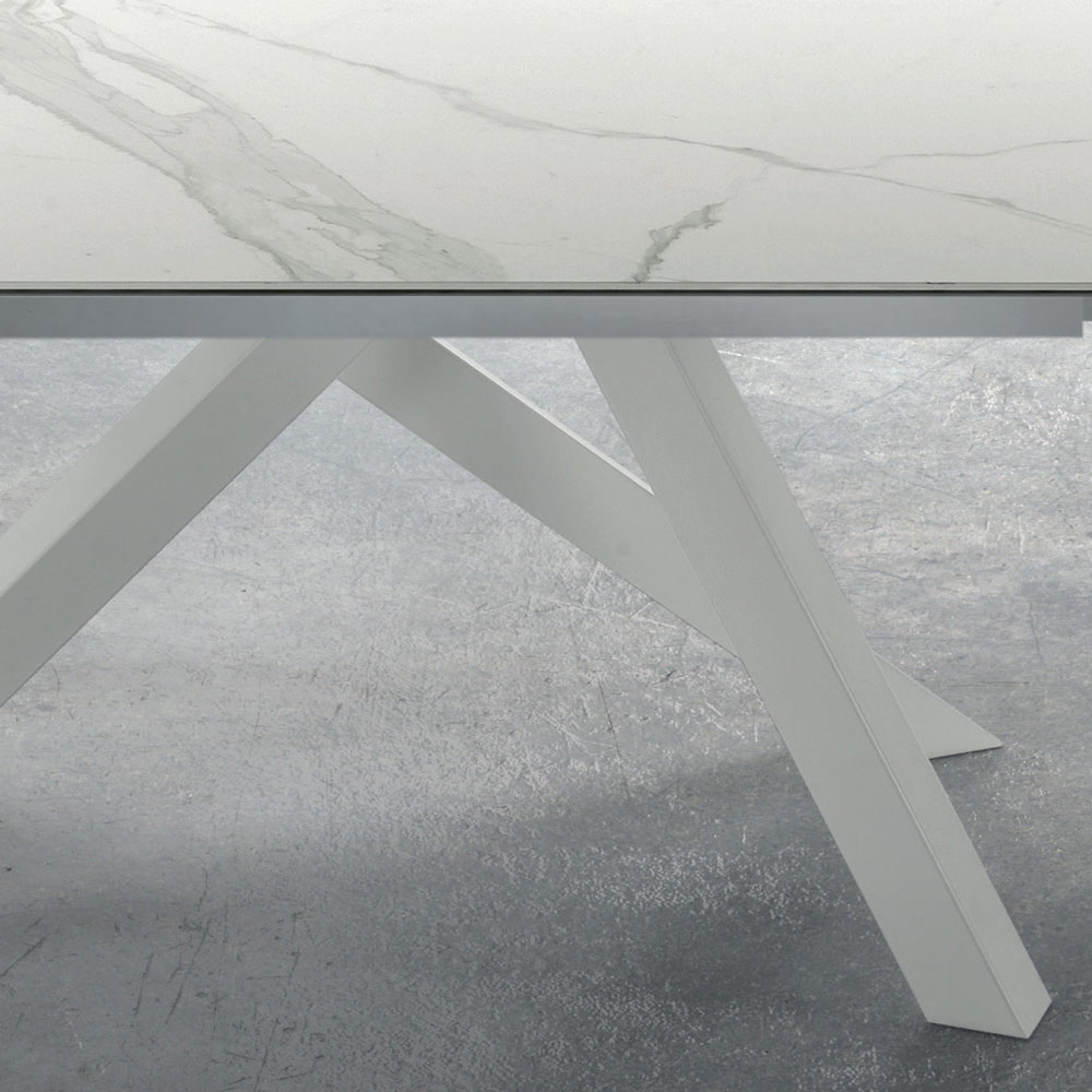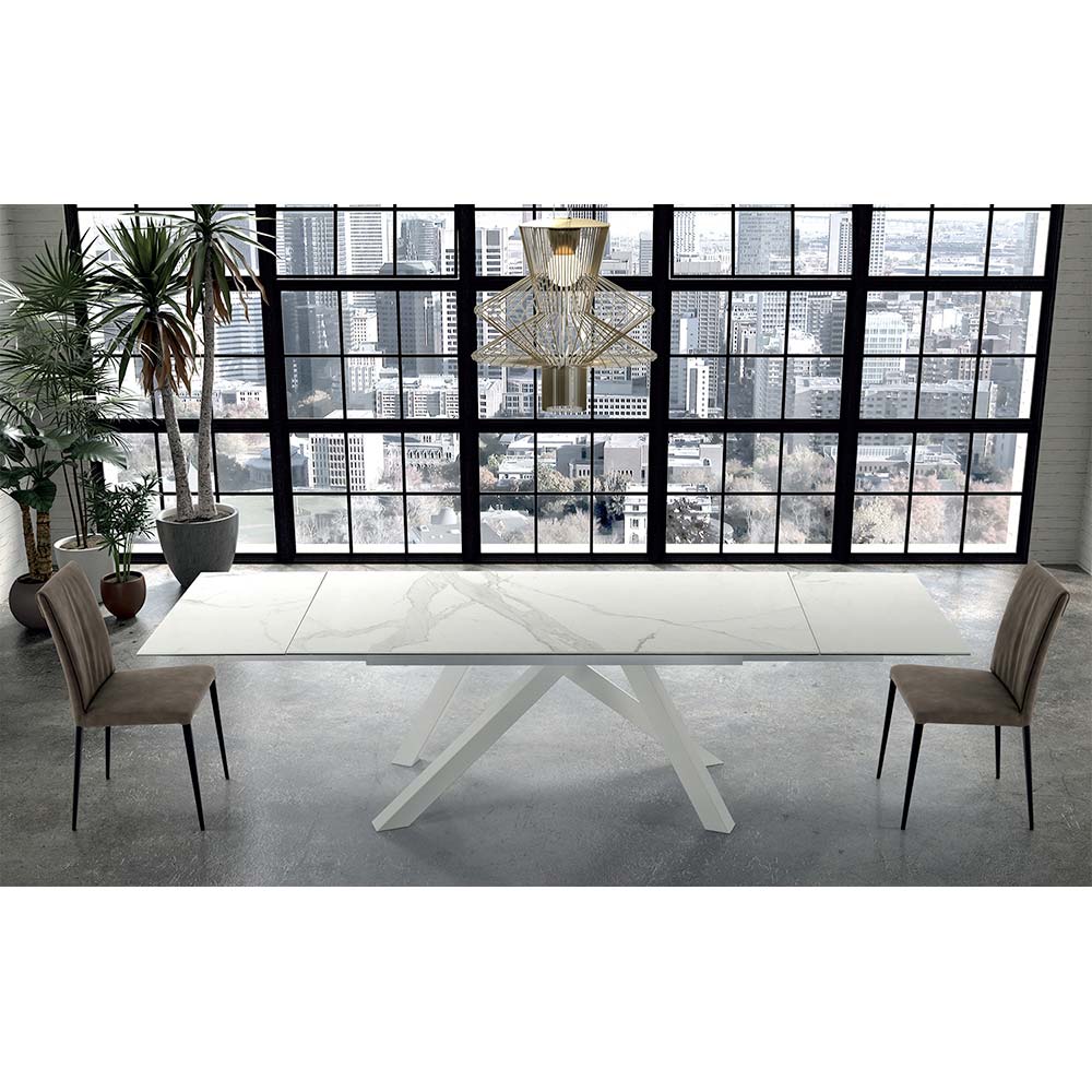 Laminový stůl rozkládací až na 278 cm s podnoží z bílé nebo grafitové oceli, vyrobený v Itálii.