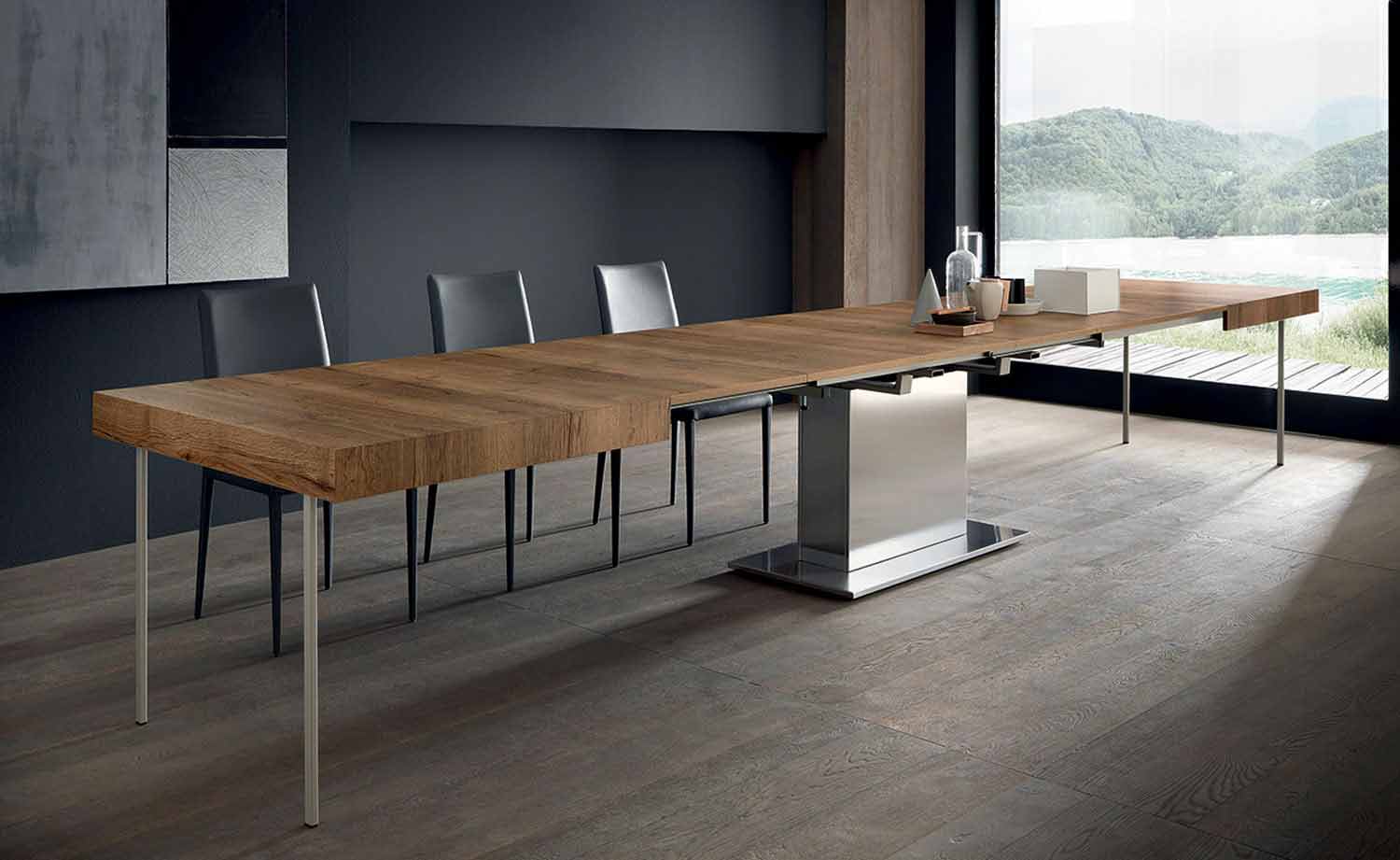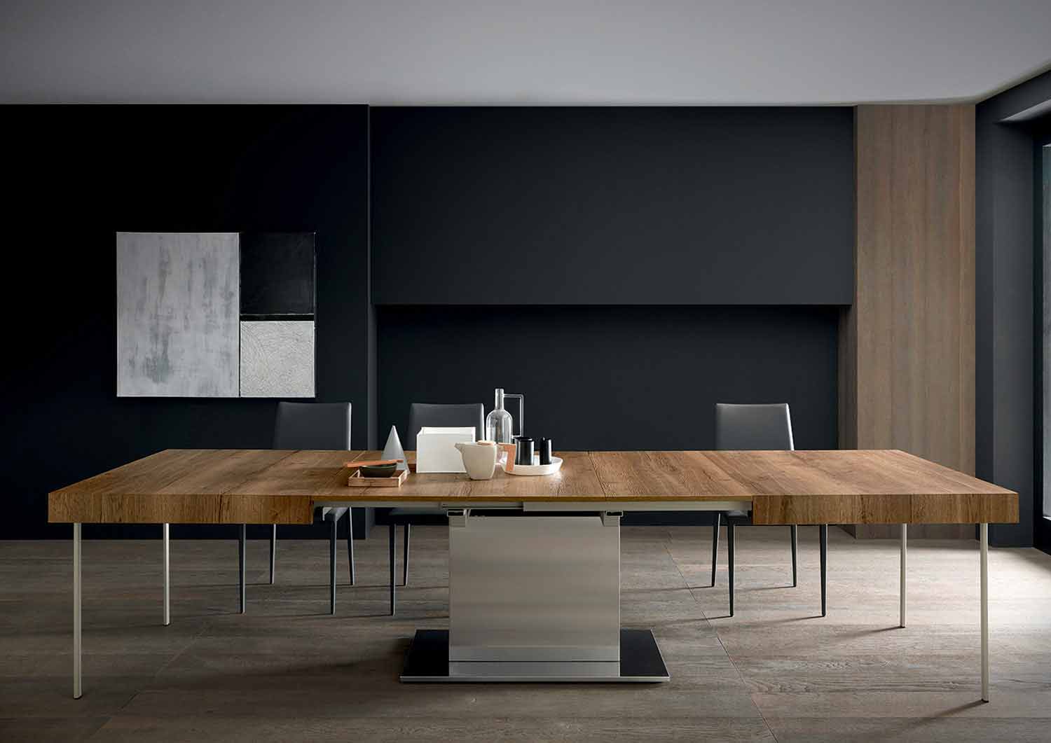 rozkládací stůl se vyznačuje malým a decentním designem pro verzi do obývacího pokoje, který však ví, jak ohromit a dát velké emoce v otevřené verzi.