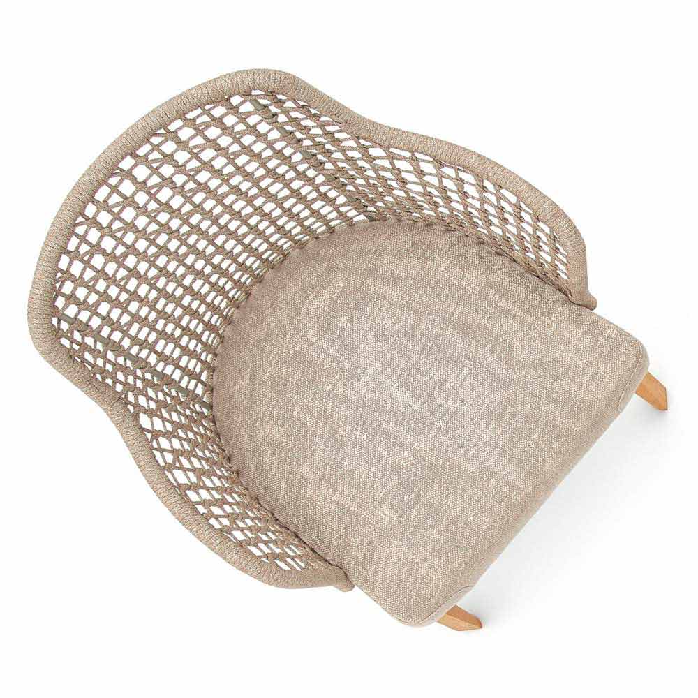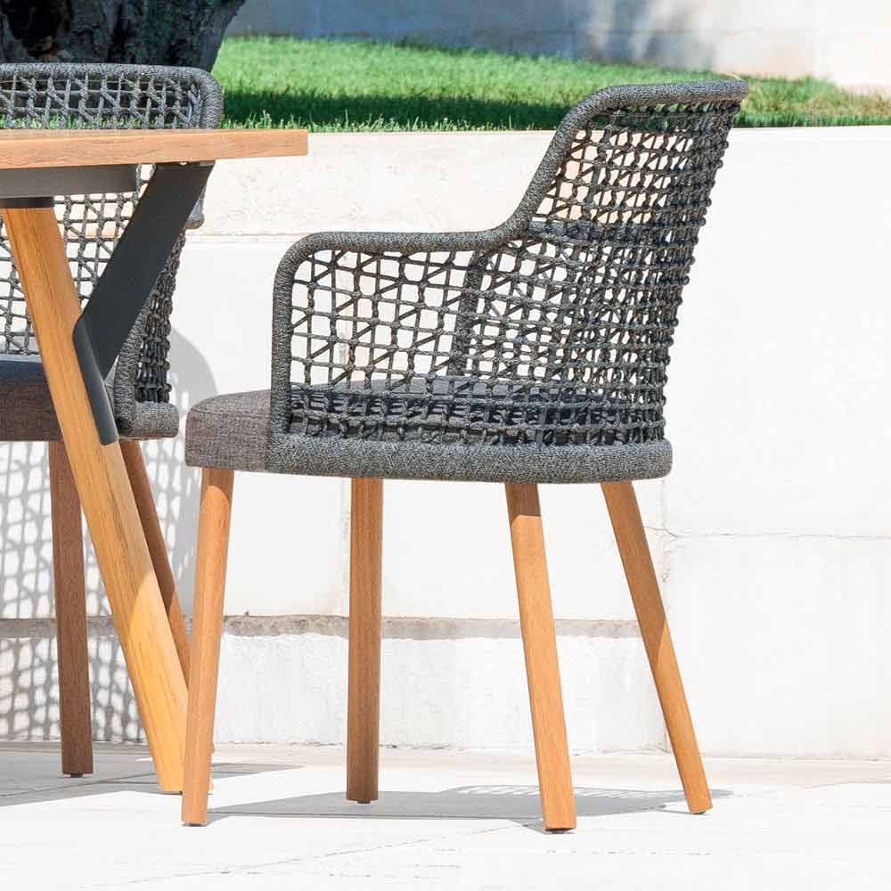 Emma je zahradní křeslo charakterizované ručně tkanou strukturou syntetických vláken s béžovým nebo tmavě šedým hliníkovým rámem potaženým práškem .