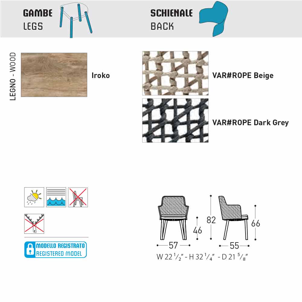 Dodává se také s pevnými dřevěnými nohami iroko a sedákem potaženým látkou s polypropylenovou konstrukcí sedadla.