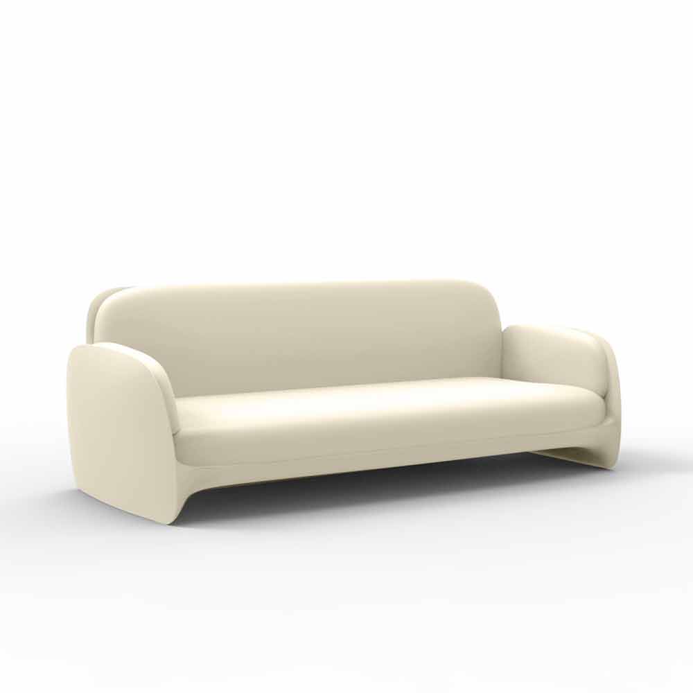 Venkovní pohovka má vlnité a elegantní linie, použitým materiálem je polyethylenová pryskyřice, která činí objekt odolným vůči nárazům, UV záření a klimatickým změnám.
