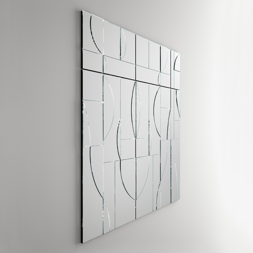 Působivý a exkluzivní nápad na vybavení, ideální pro vytváření různých kompozic díky obzvláště elegantní a rafinované textuře získané překrýváním zrcadel různých tvarů a velikostí. Díky svému grafickému designu vám umožňuje vytvářet skutečná umělecká díla, která se díky své