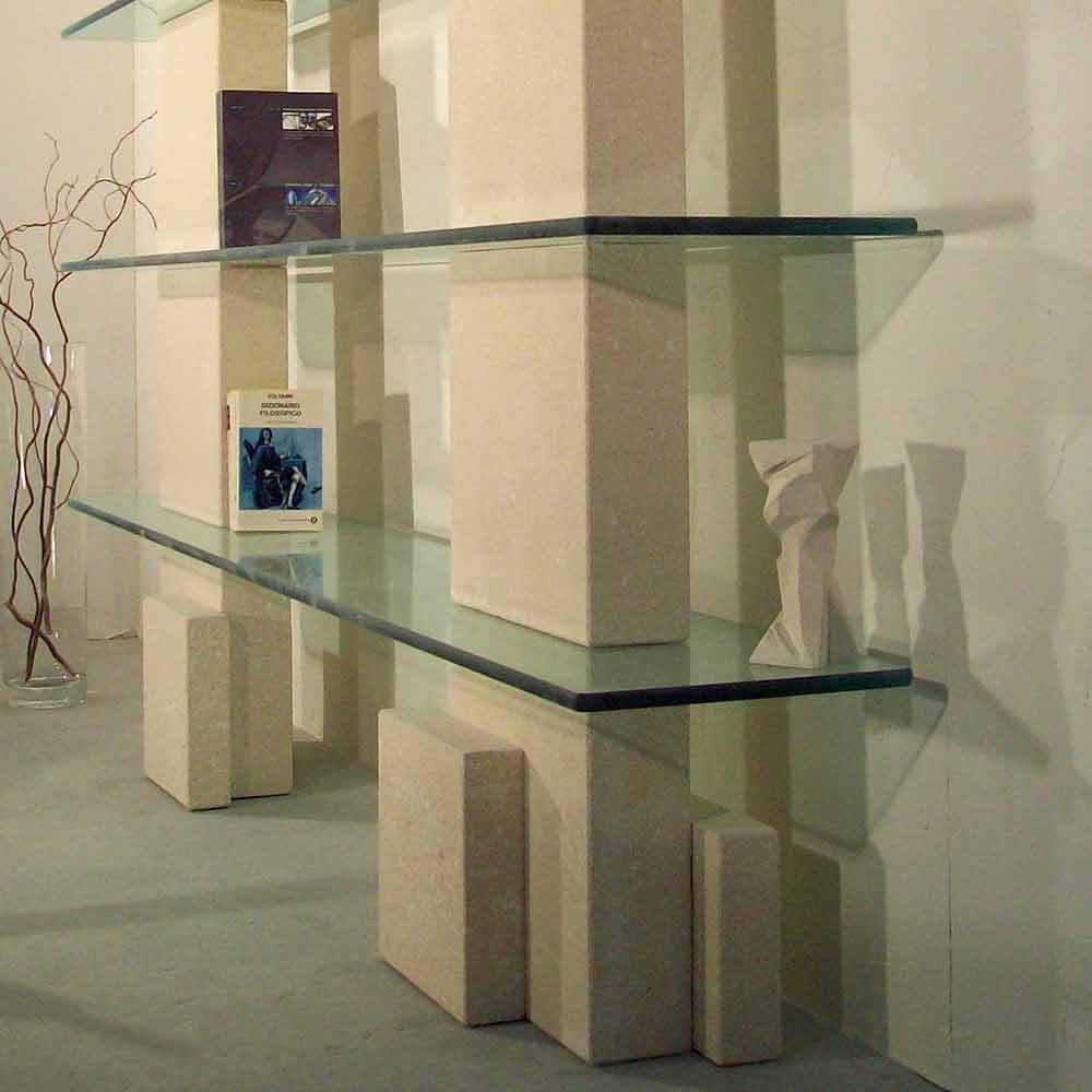 Modulární knihovna Vyrobeno v Itálii z kamene a skla. Lineární a esenciální kompozice, která svým čistým a leštěným povrchem eliminuje jakýkoliv kompromis se sochařskými a dekorativními tvary. Kniha Poplia ukazuje, že kámen Vicenza je moderní, světlý a teplý materiál, konstrukce se skládá ze modulových prvků o výšce 35 cm se 4 skleněnými policemi s drsnými hranami. Vnitřní bezpečnostní konstrukce zajišťuje maximální stabilitu konstrukce.