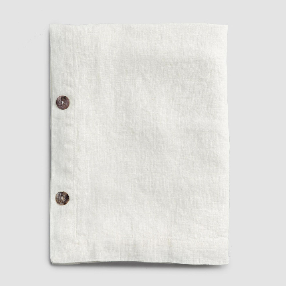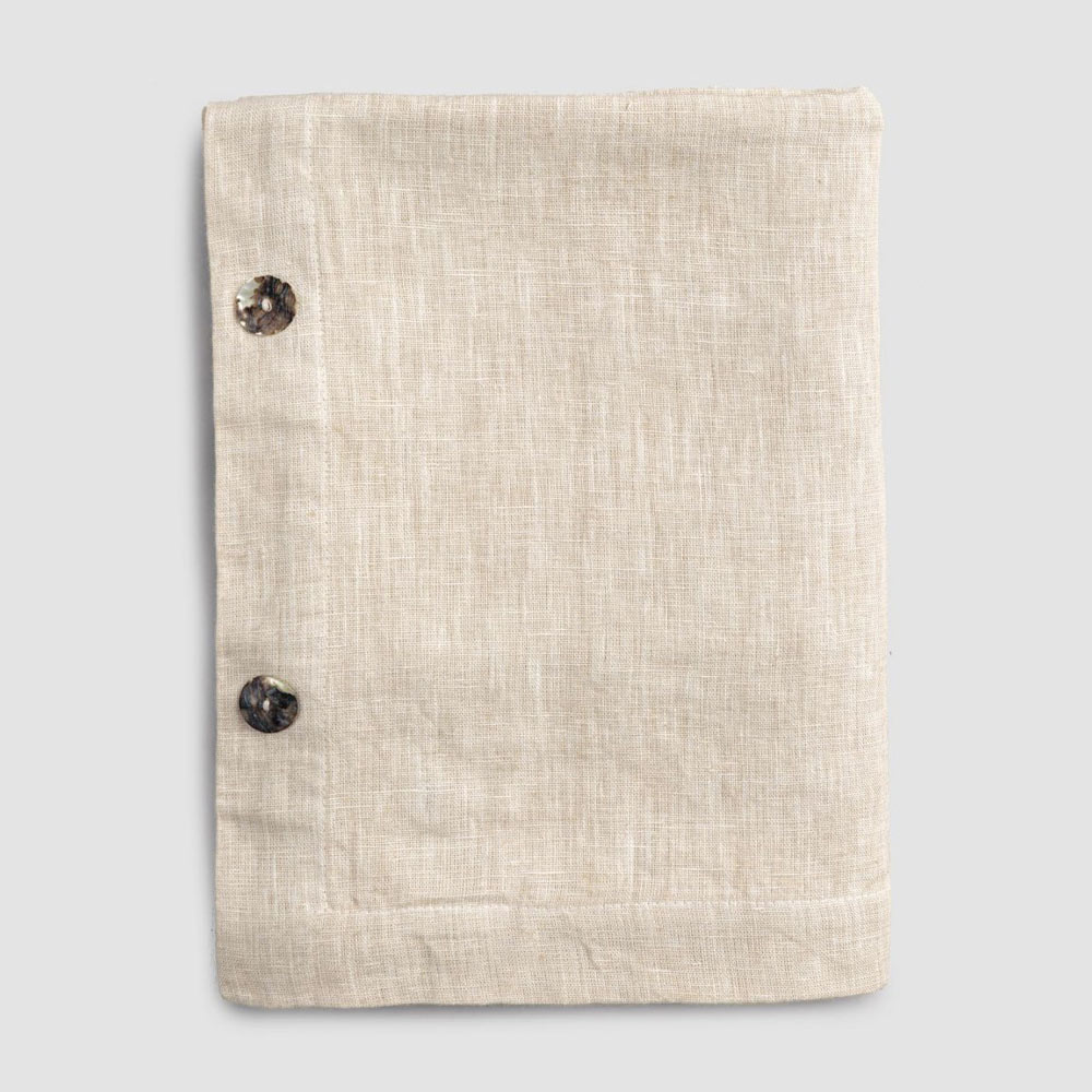 Modulární obdélníkový plátěný ubrus s perleťovými knoflíky, ručně vyráběná kvalita vyrobená v Itálii.