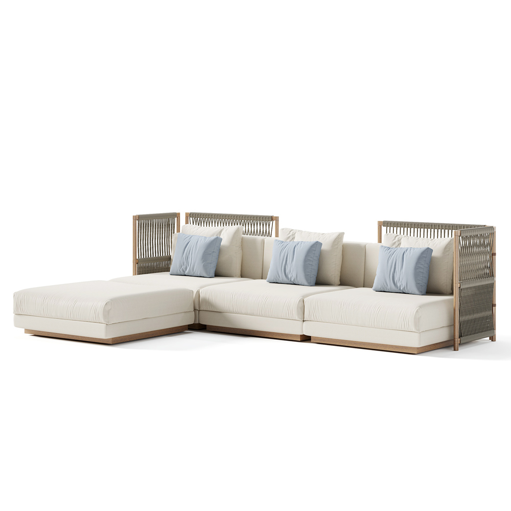 Modulární zahradní pohovka s polstrovanými polštáři z látky Made in Italy