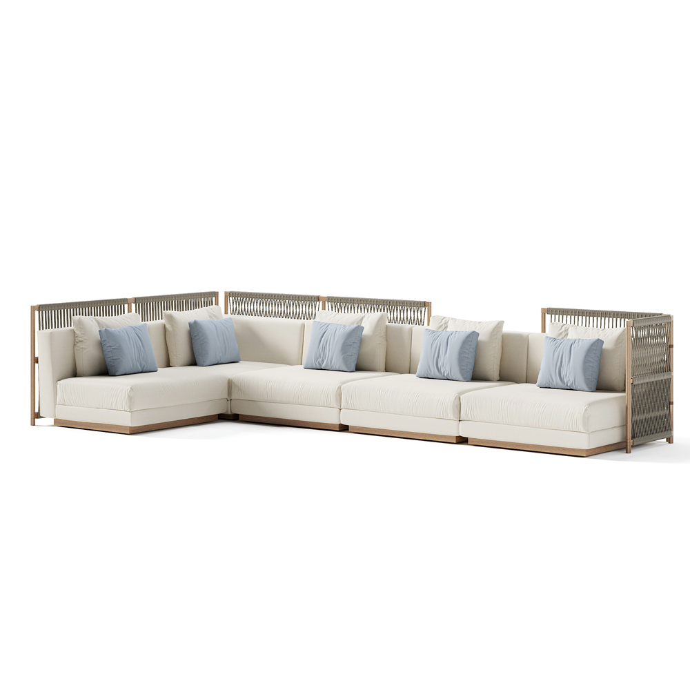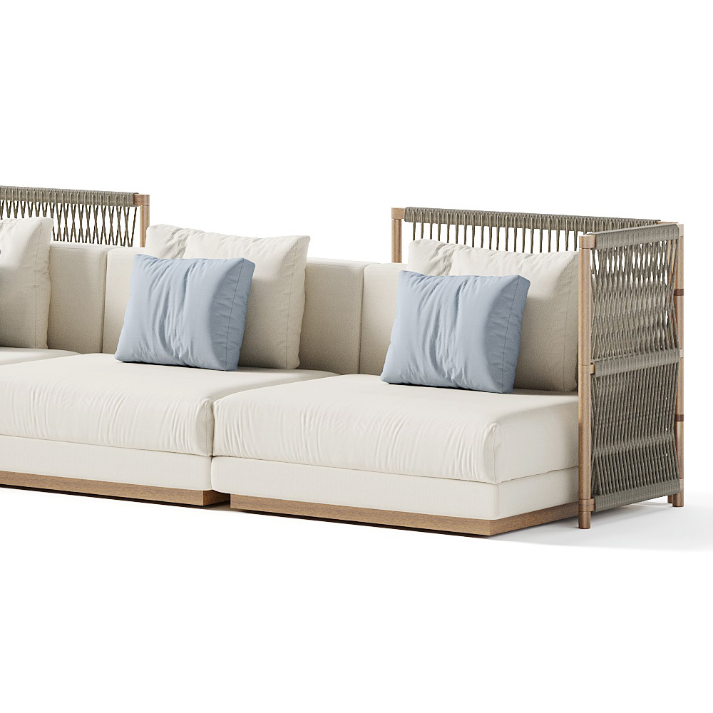 Složení zahradní pohovky s čalouněnými polštáři v látce Made in Italy