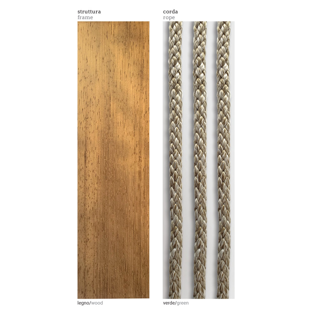 strukturou ve dřevě iroko a zelenými provazovými vazbami díky svému zdobení připomíná