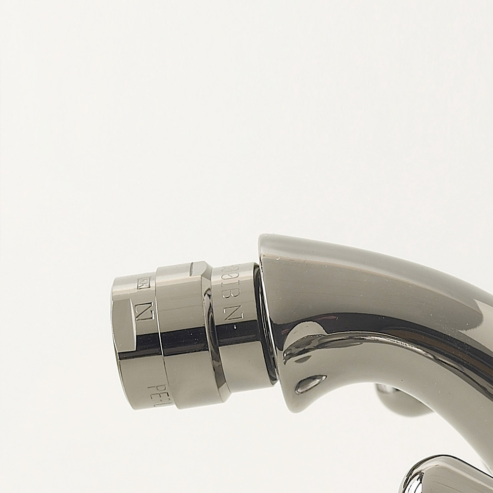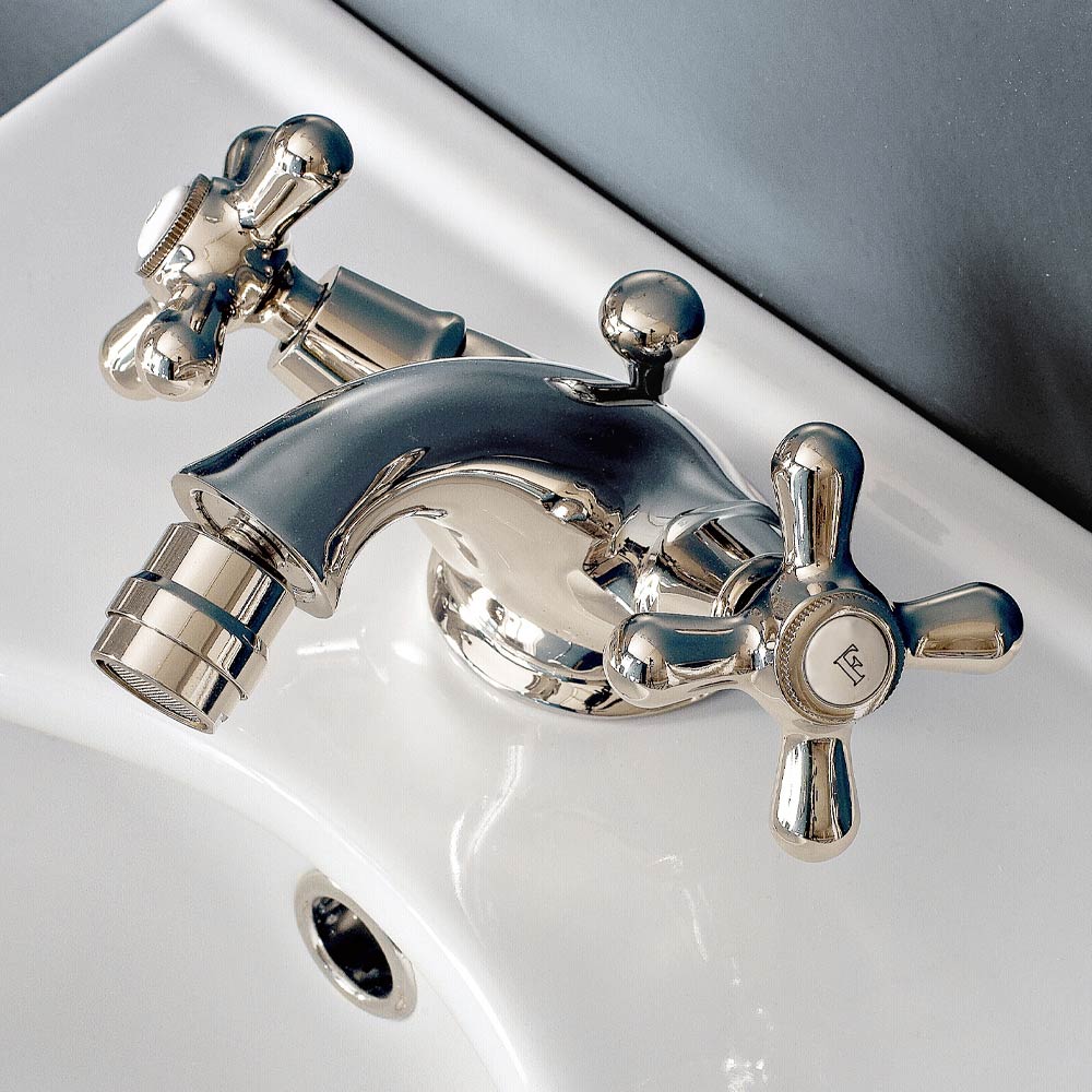 Jednootvorová bidetová baterie s ručně vyráběným mosazným splachovačem vyrobená v Itálii.