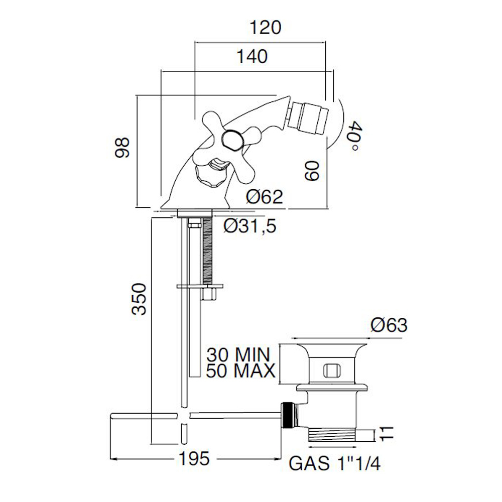 jednootvorová bidetová baterie pro jednootvorový bidet s odtokem je kompletně