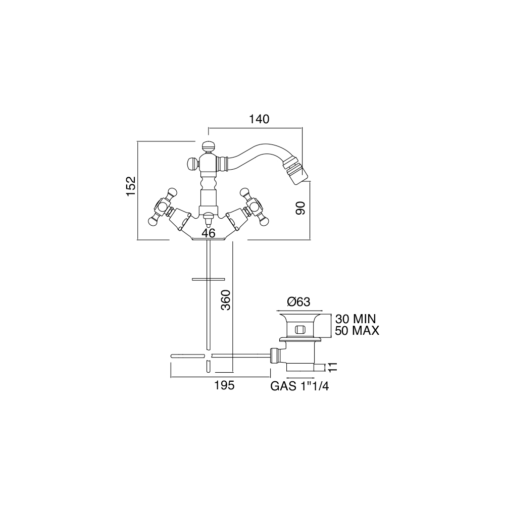 Jednootvorová bidetová baterie z mosazi italské výroby Ursula, vintage design.