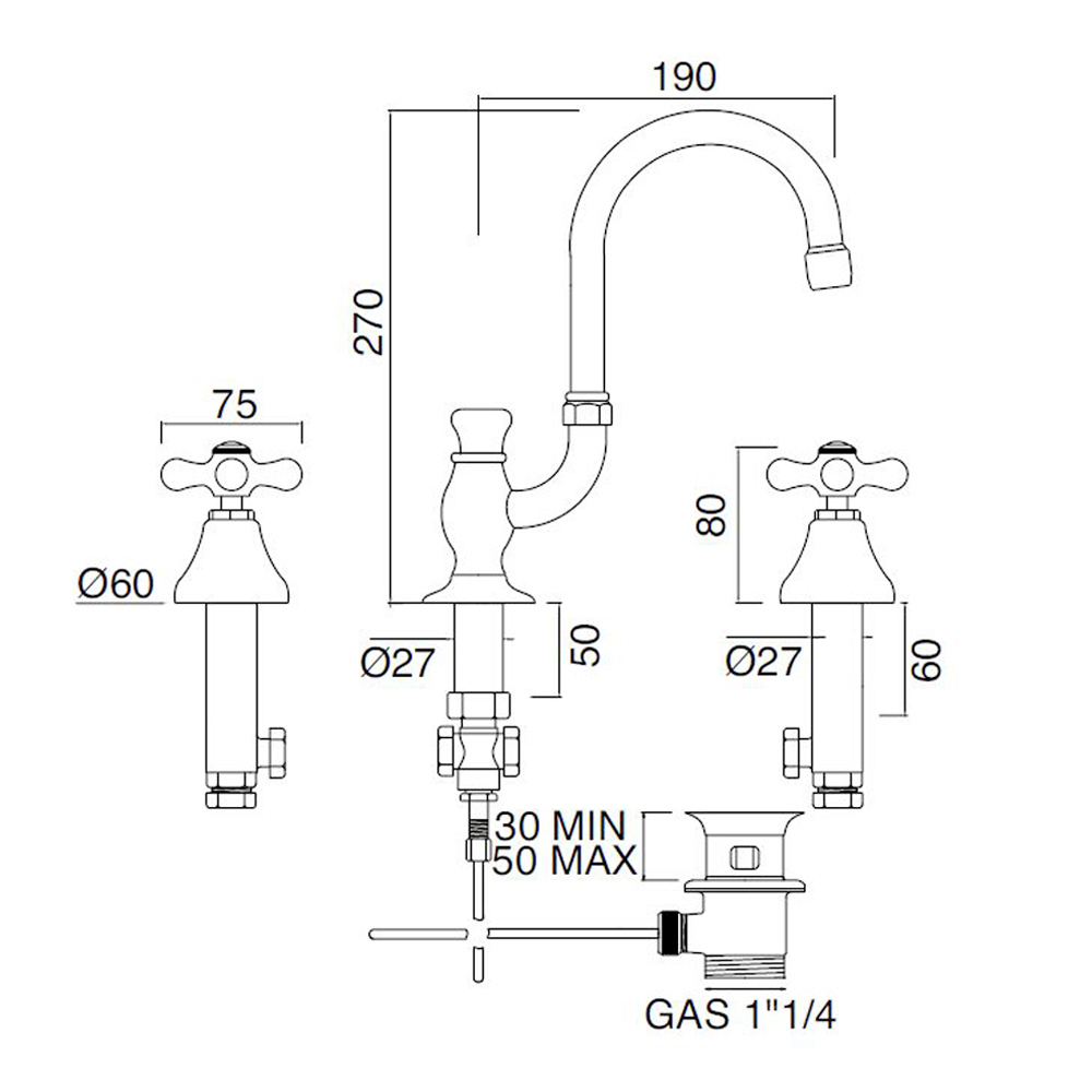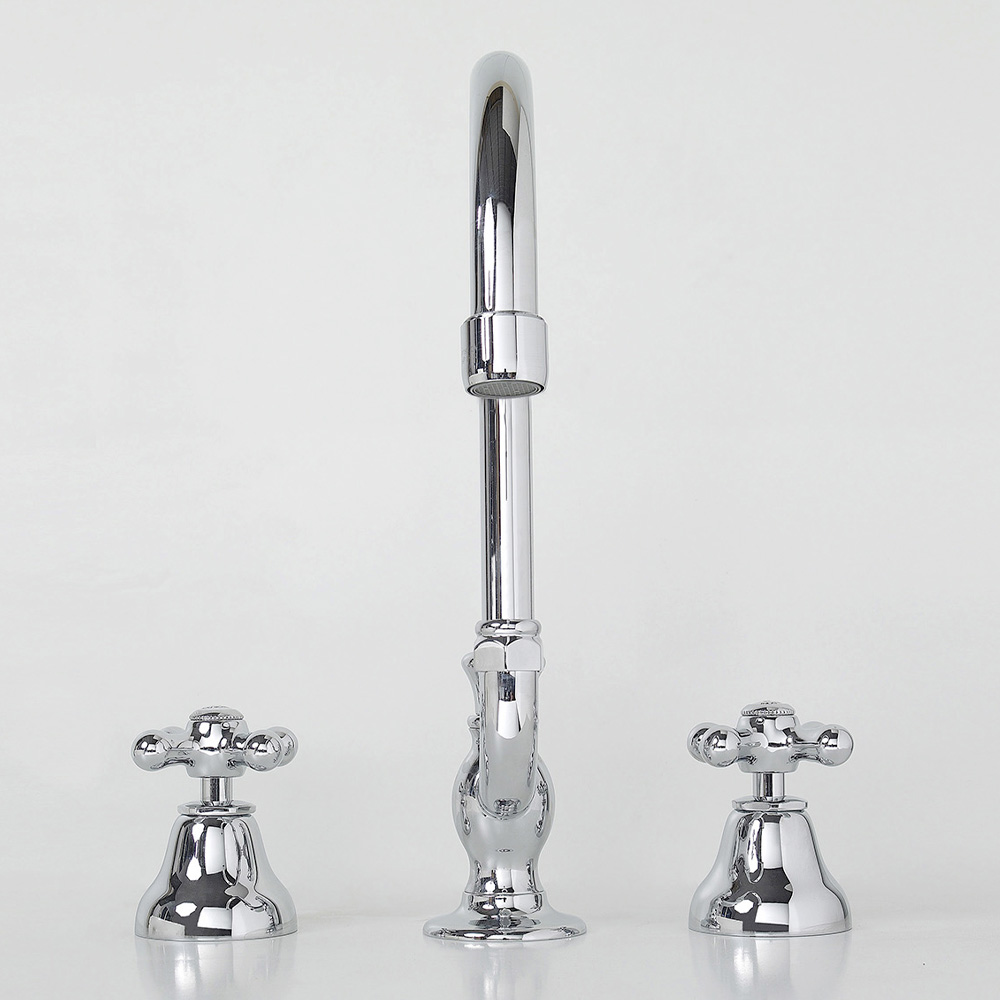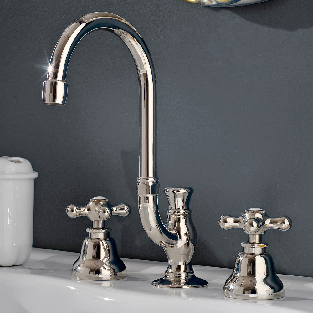 3otvorová umyvadlová baterie s vysokým výtokem a mosazným odtokem, vysoká kvalita, vyrobeno v Itálii.