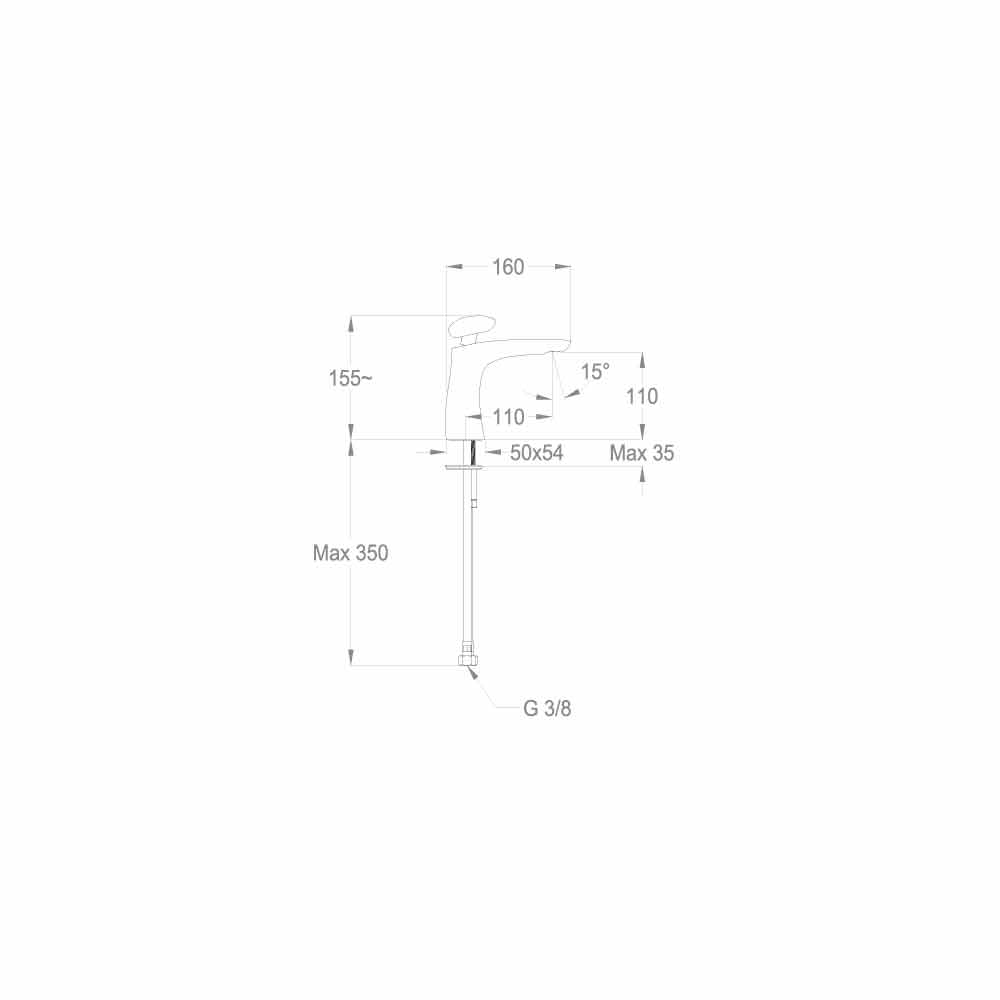 Páková umyvadlová baterie s ultramoderním a avantgardním designem vysoká 155 mm a se středovou vzdáleností 110 mm.