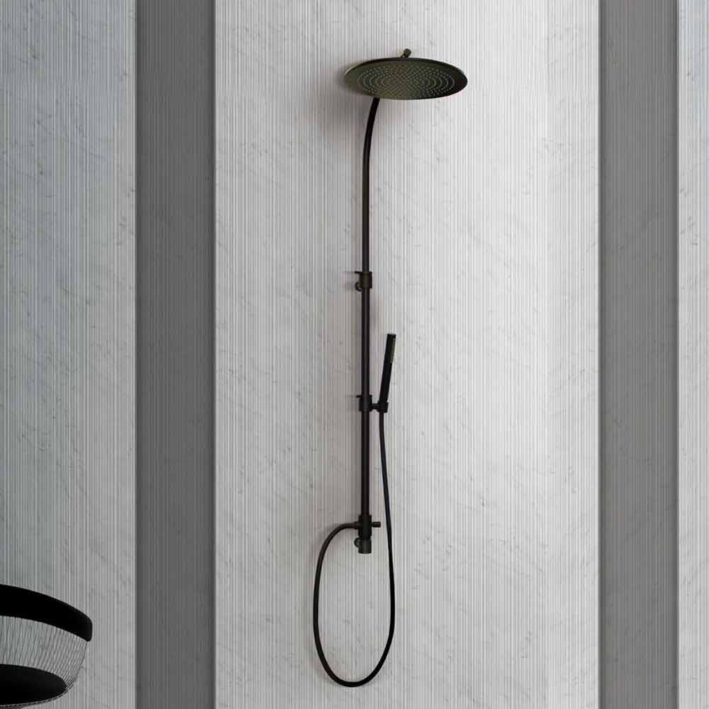 Moderní mosazný sprchový sloup s kulatou sprchovou hlavicí, kvalitní výrobek Made in Italy.