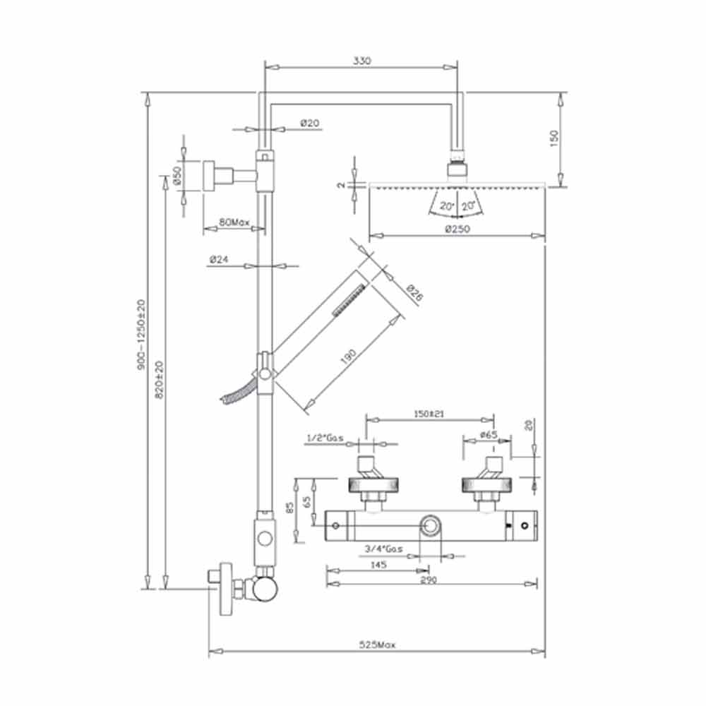 Vlastnosti:- sprchový sloup z pochromované mosazi