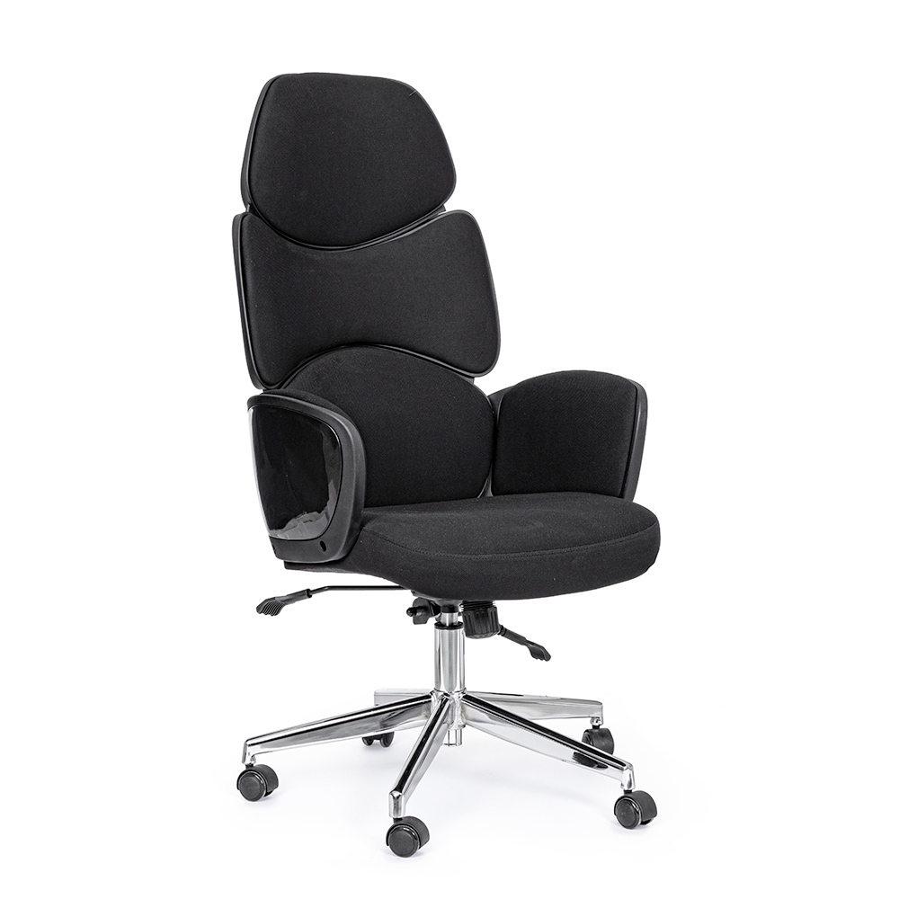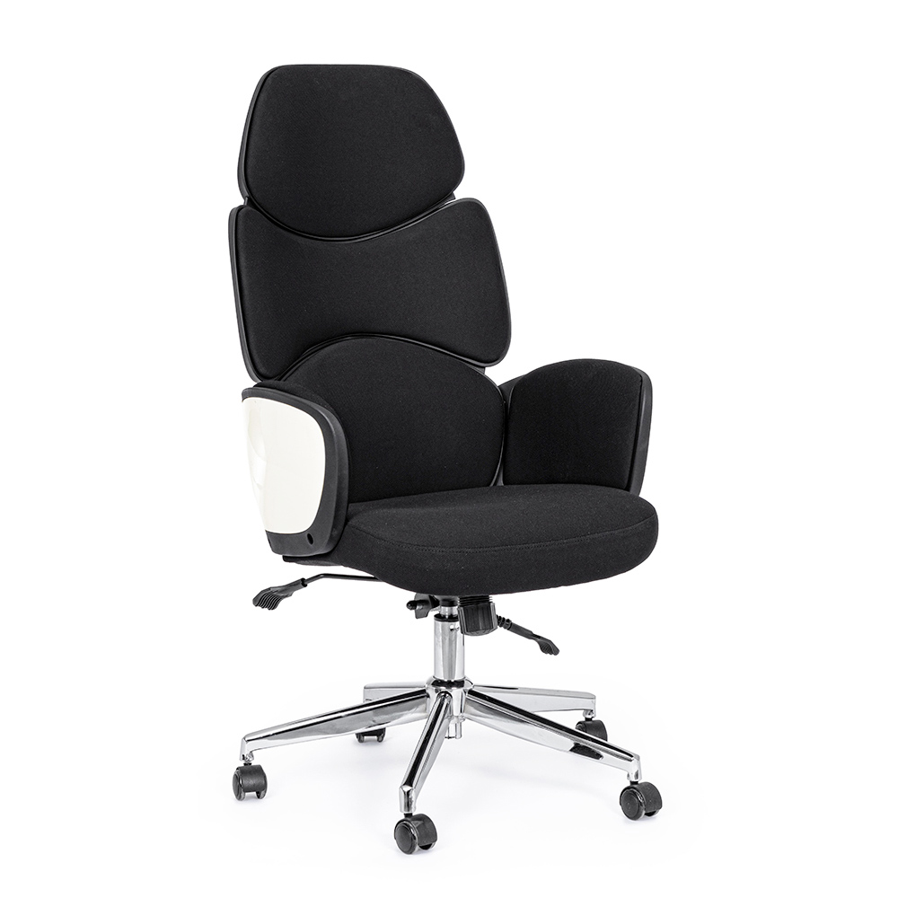 Otočné a polohovatelné kancelářské křeslo z oceli a plastu v různých povrchových úpravách.