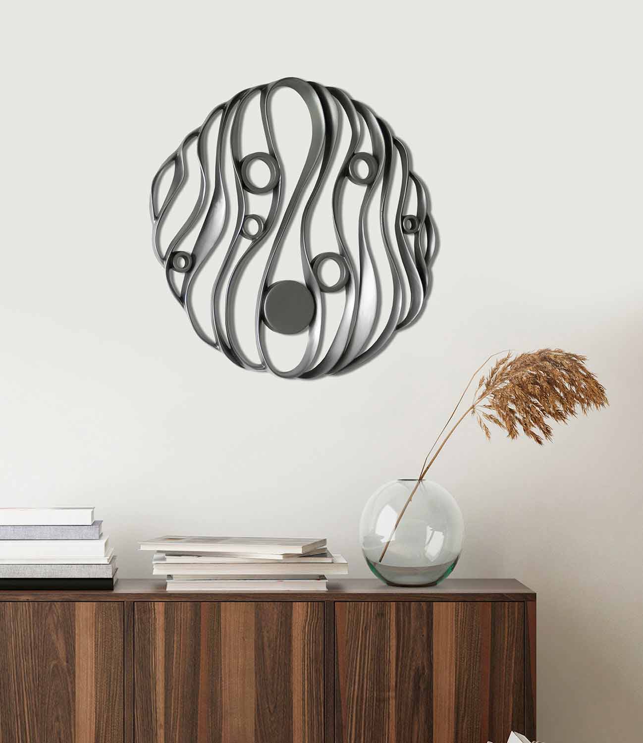 Moderní design nástěnné dekorace v černé nebo antracitové perforované keramice, do obývacího pokoje nebo ložnice vyrobené v Itálii.